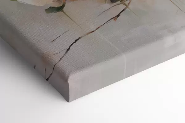 Glezna Balti magnolijas ziedi ar zaļām lapām uz zara, maigi triepieni ar otu, pieklusinātas krāsas Nr s44404