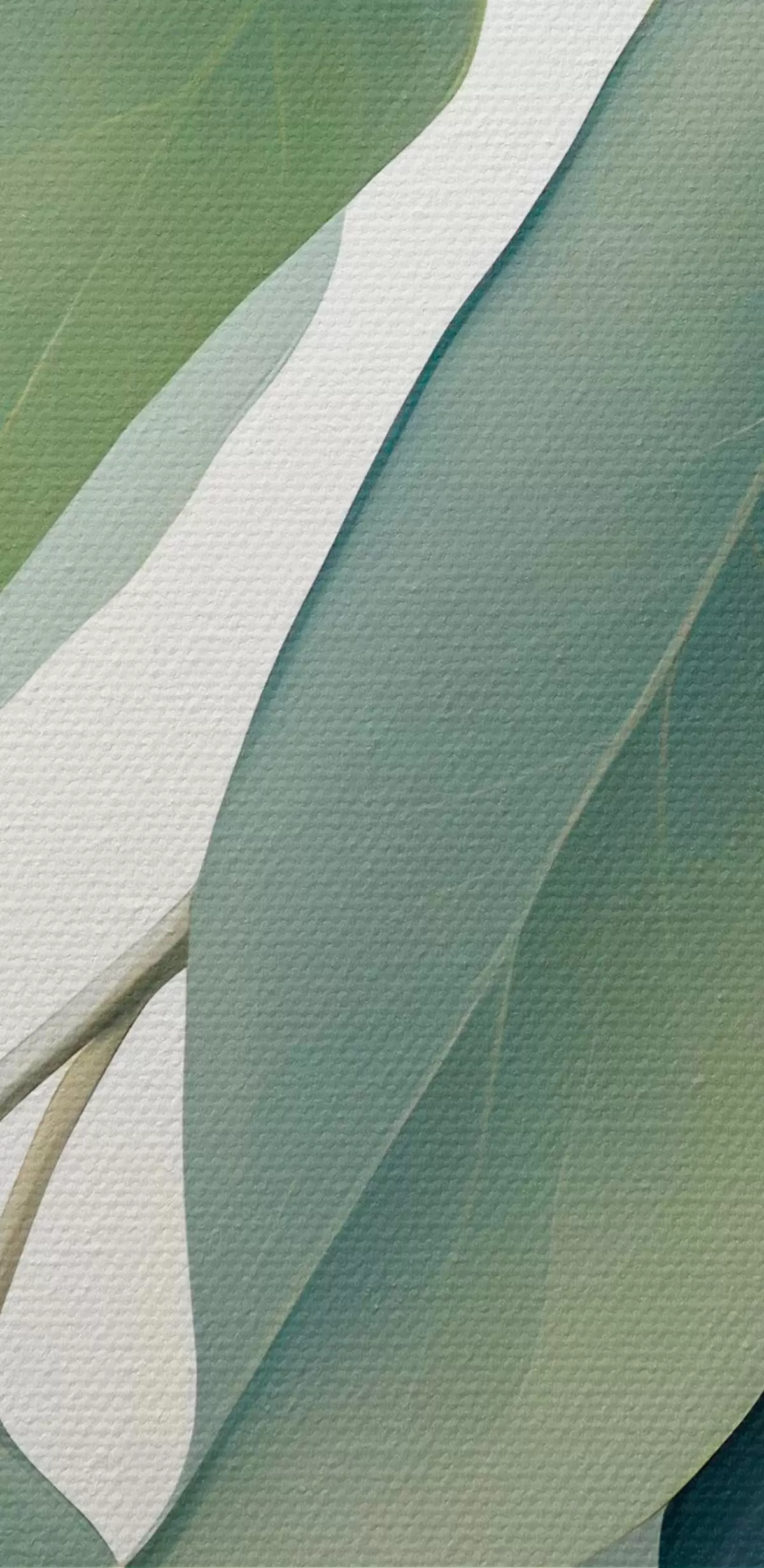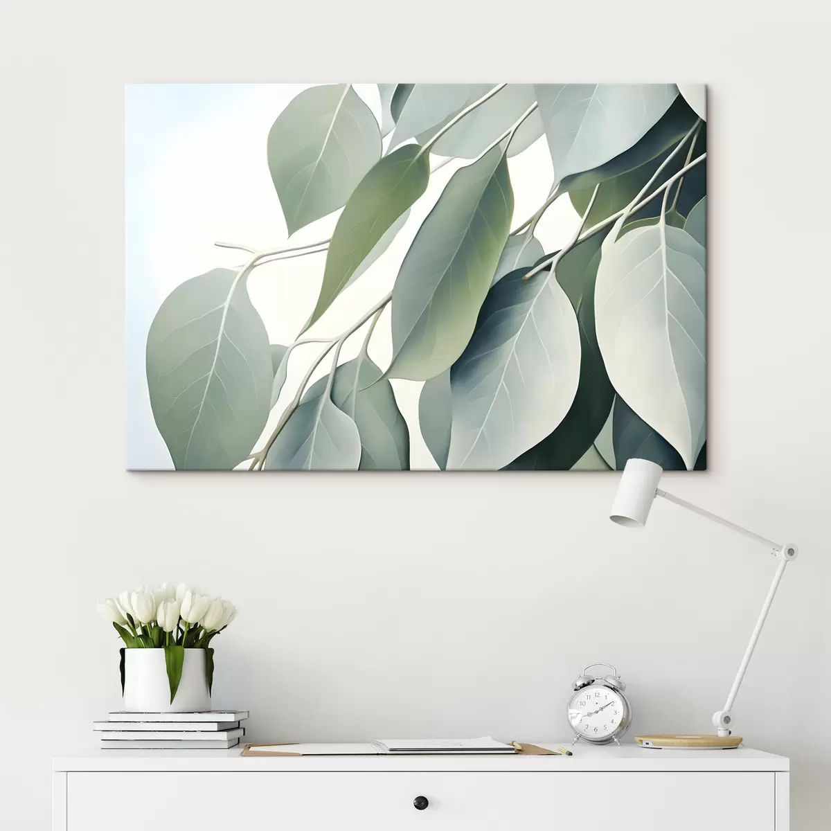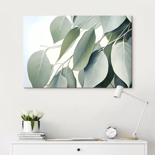 Glezna Eikalipta lapas ar maigu, maigu, pieklusinātu krāsu paleti, nomierinošu un dabisku estētiku Nr s44410