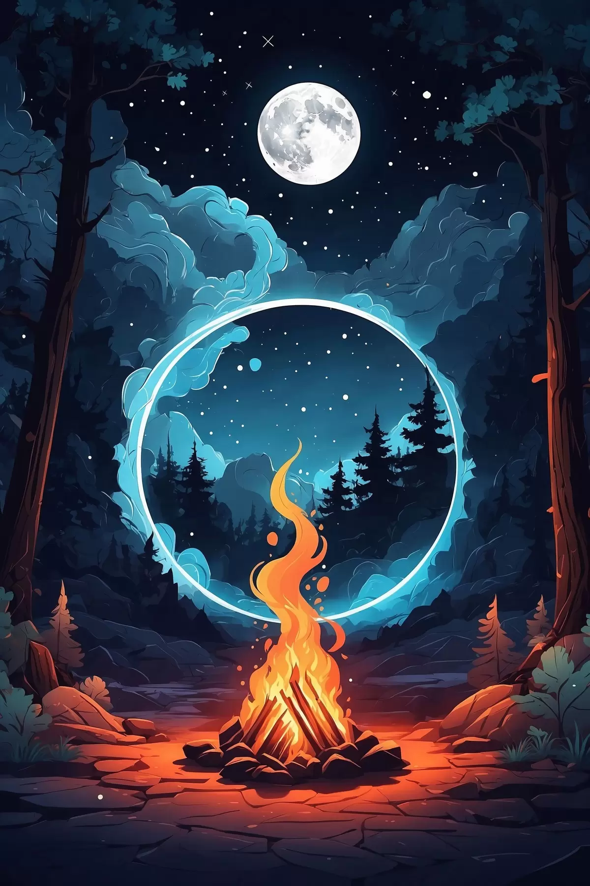 Glezna Ugunskurs nakts mežā s44436