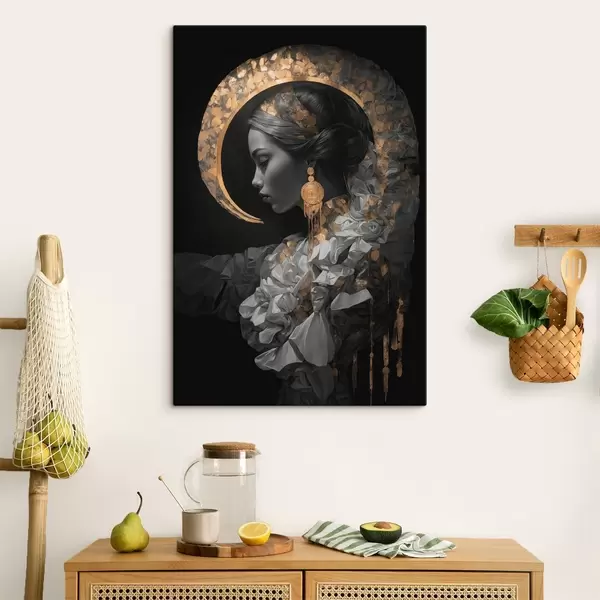 Glezna Meitene un dzeltens pusmēness uz melna fona Nr s44449
