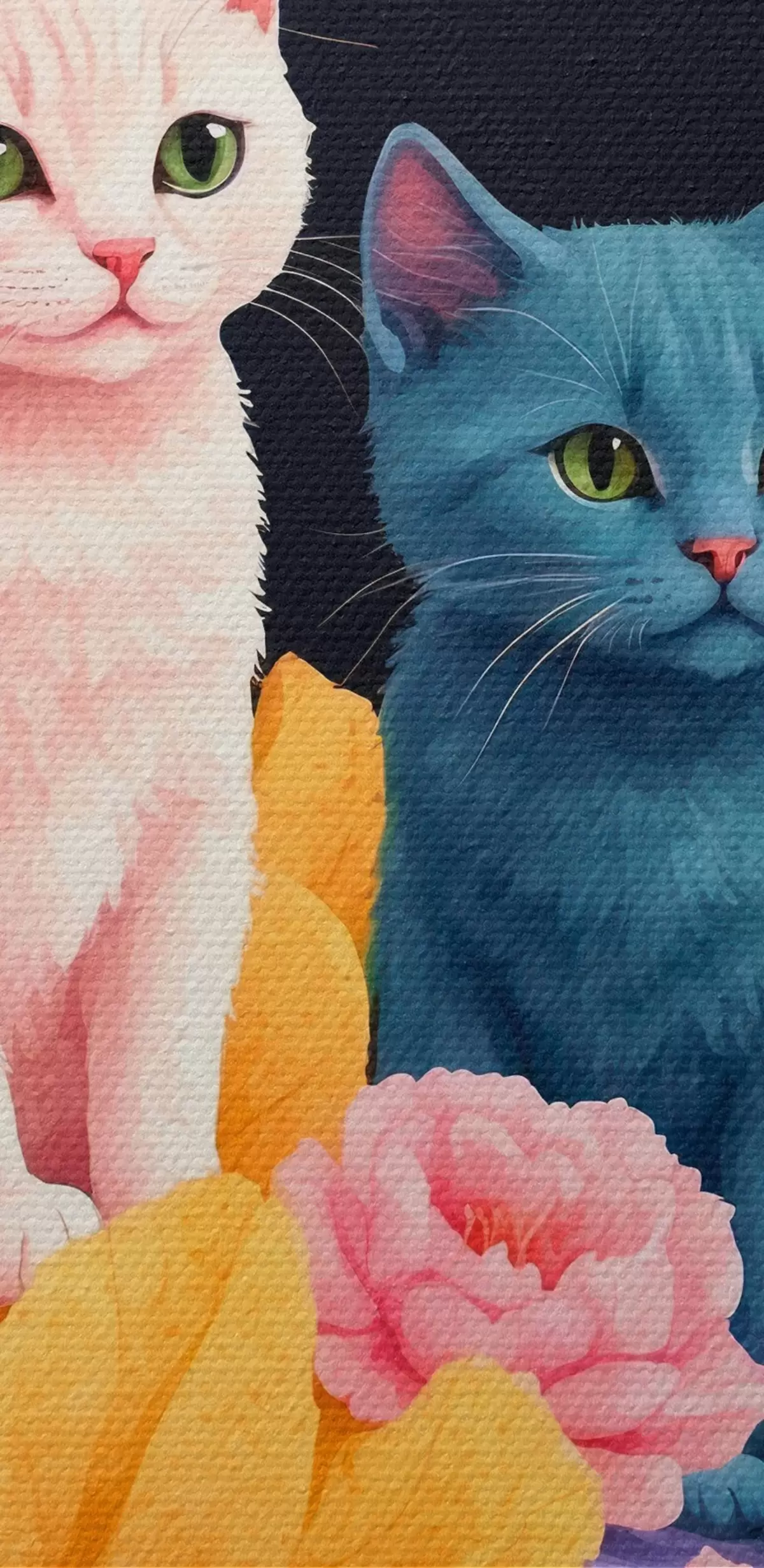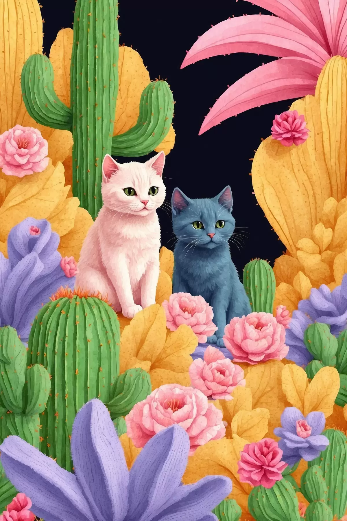 Glezna Mākslīgie kaķi starp ziediem un kaktusiem Nr s44452