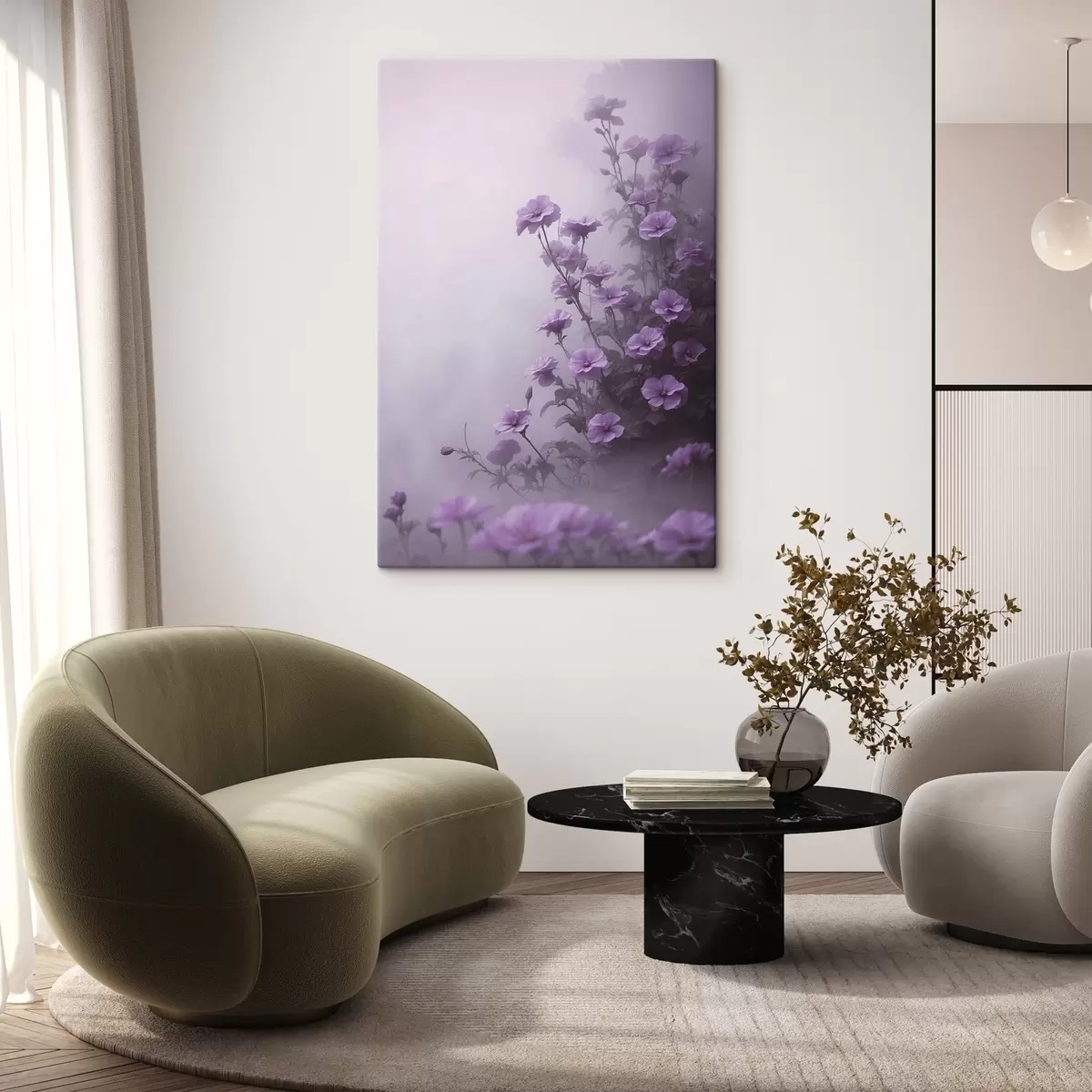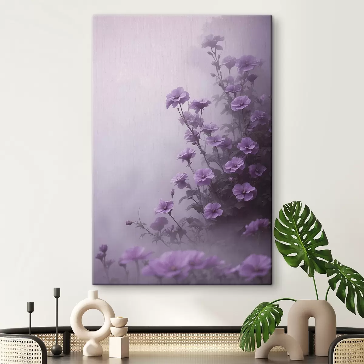 Glezna Violeti ziedi miglā s44456