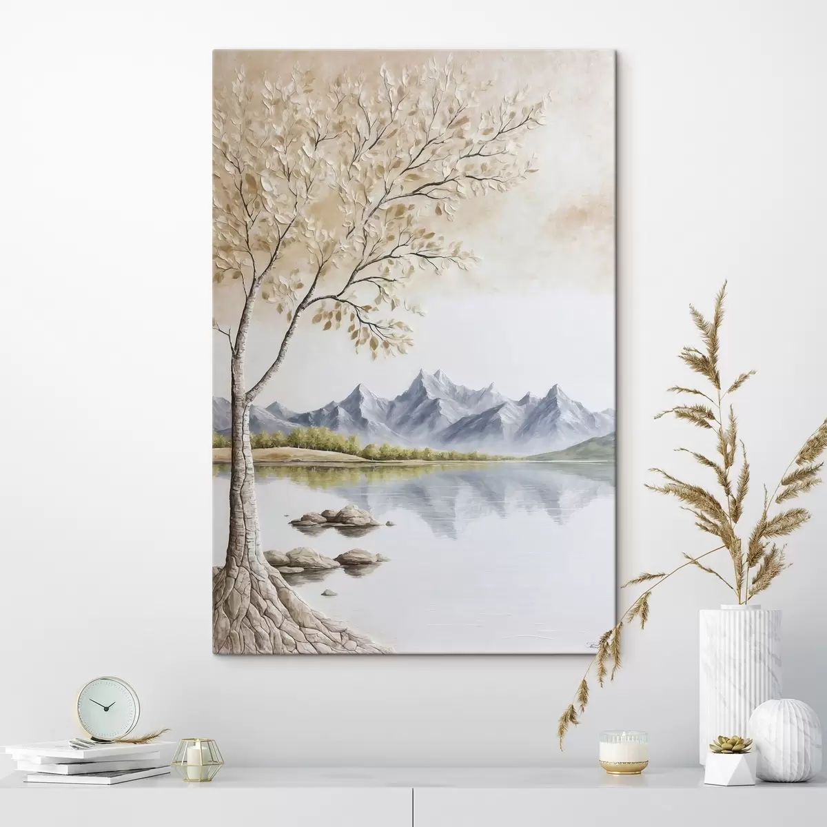 Glezna Koks uz ezera un sniegotu kalnu fona Nr s44459