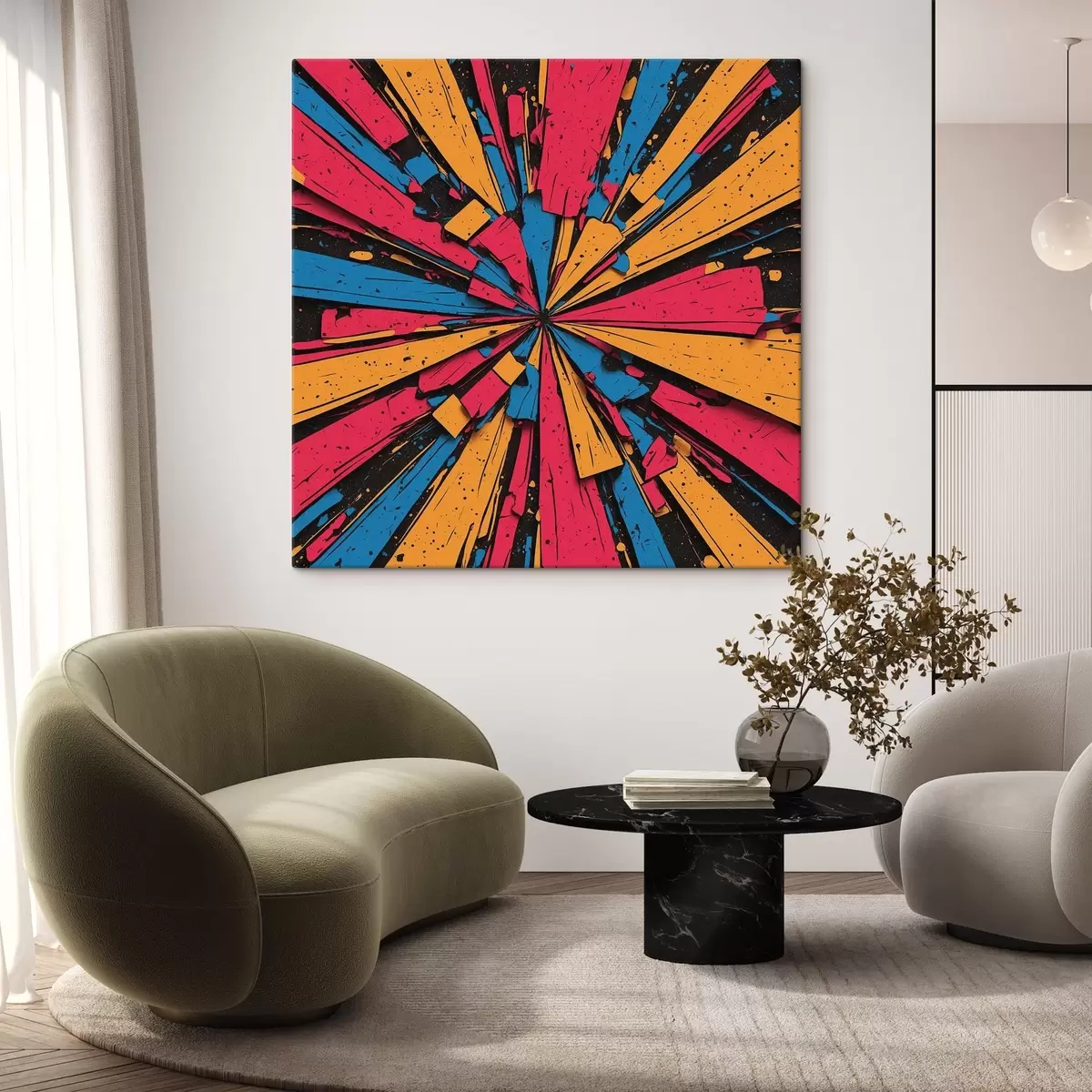 Glezna ir iekārtojama uzreiz pēc tās saņemšanas. Glezna tiks izstiepta uz 2 cm platām koka nestuvēm.