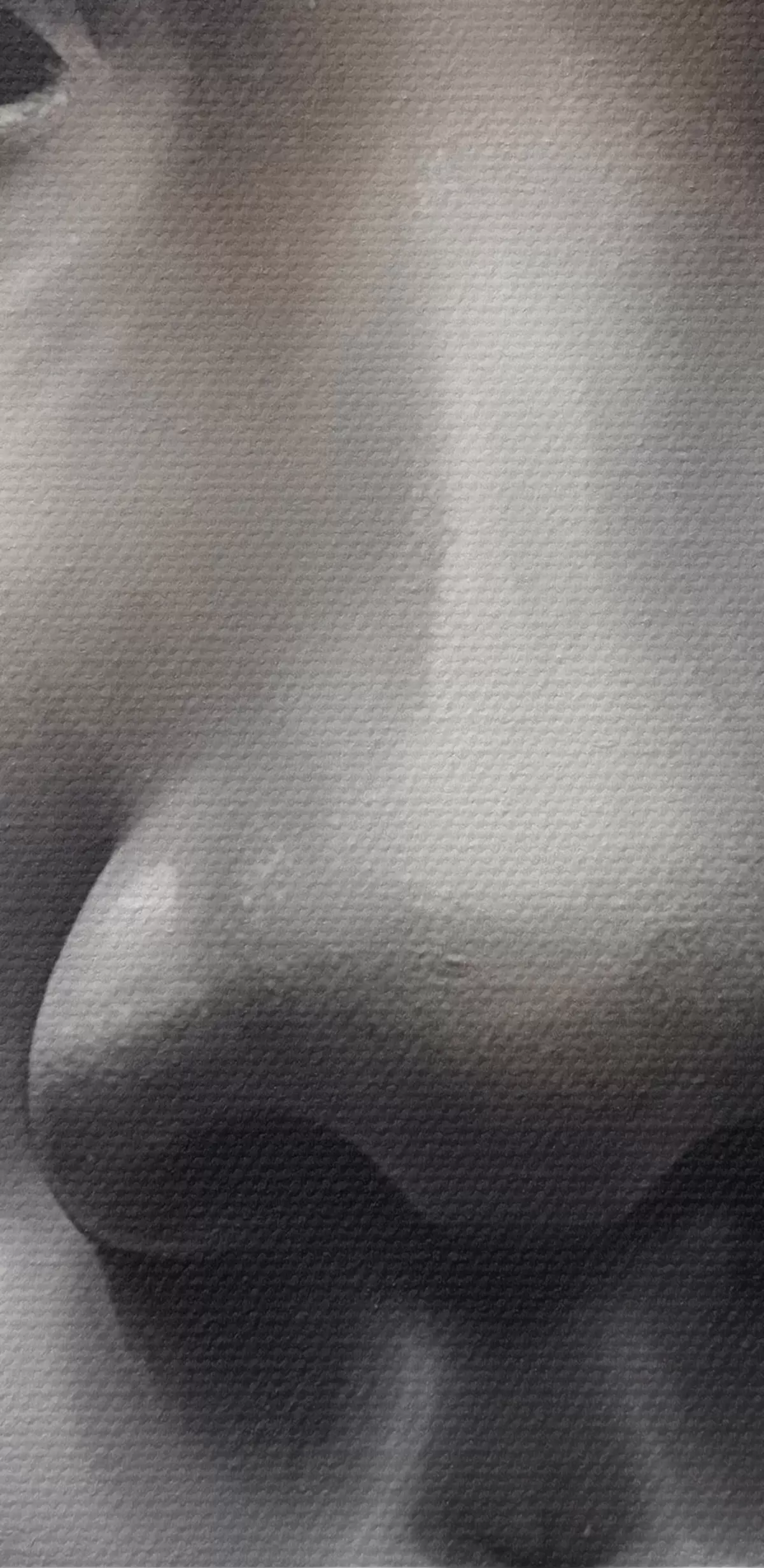 Smalkais diegu pinums uz šī audekla atgādina profesionālu mākslinieku audeklu virsmu.