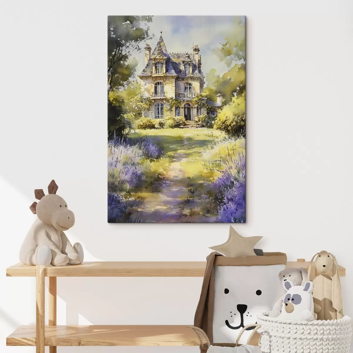 Glezna Franču lauku māja, akvareļu stils, lavandu lauki s44501