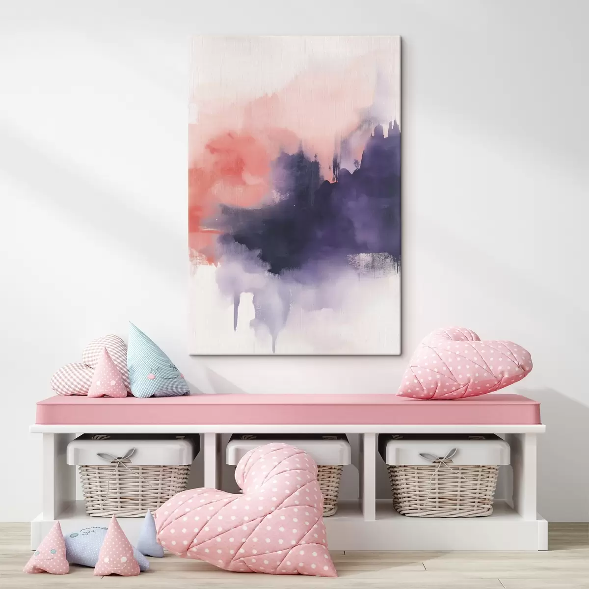 Glezna Akrila stila abstrakcija, triepieni ar otu, violeta un rozā krāsa s44507