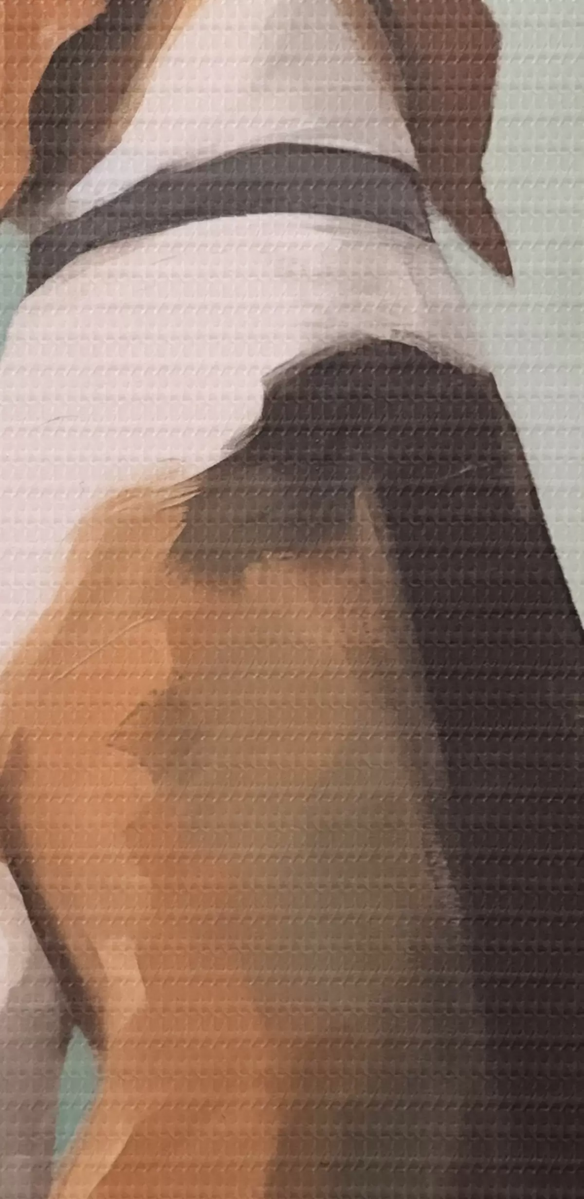 Smalkais diegu pinums uz šī audekla atgādina profesionālu mākslinieku audeklu virsmu.
