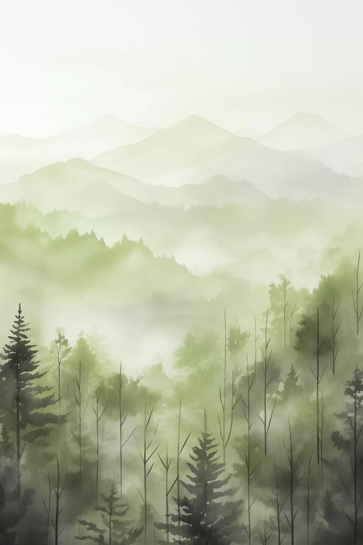 Glezna Kalni ar meža ainavu, zaļas krāsas, akvareļu stilā s44606