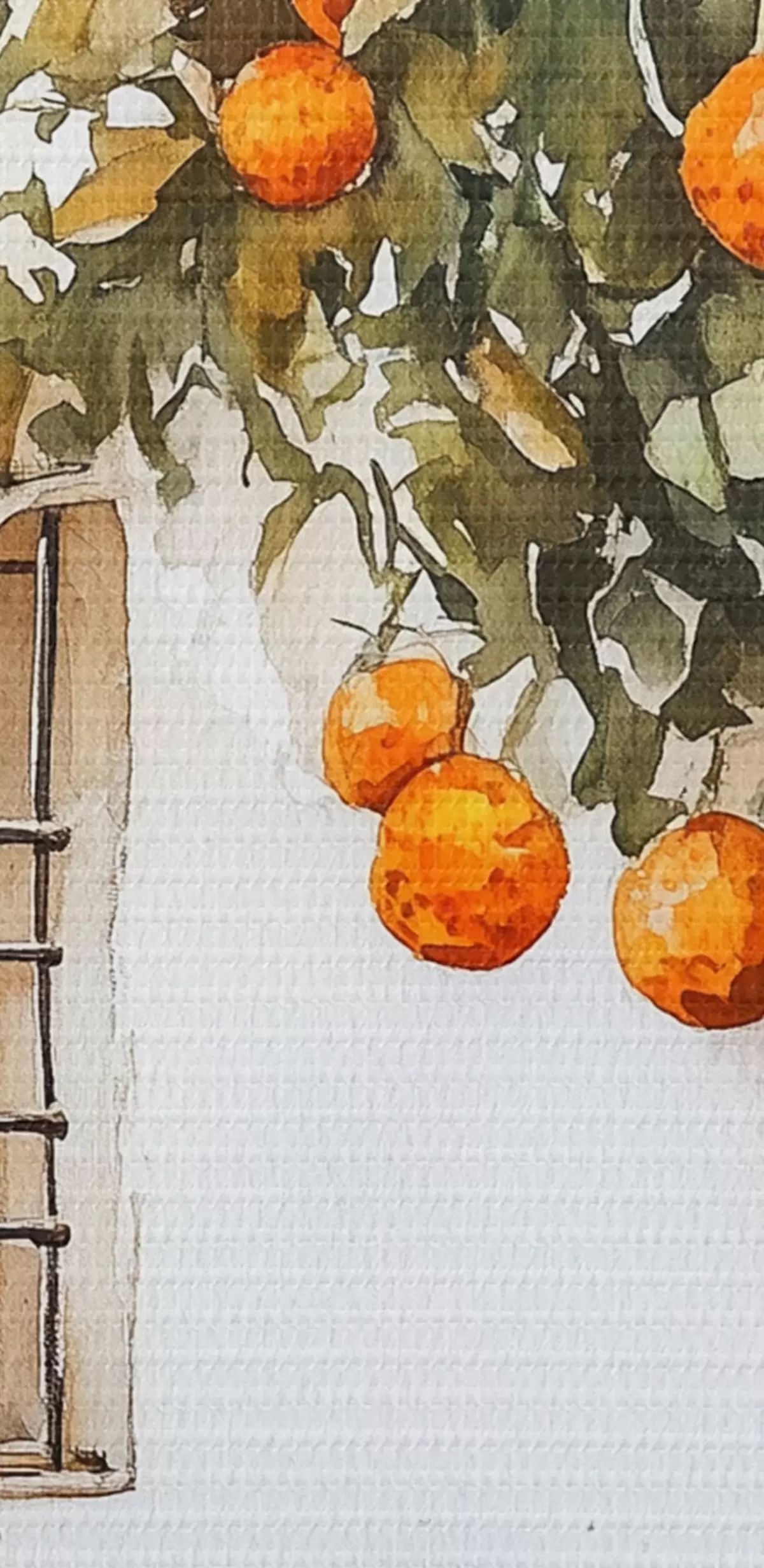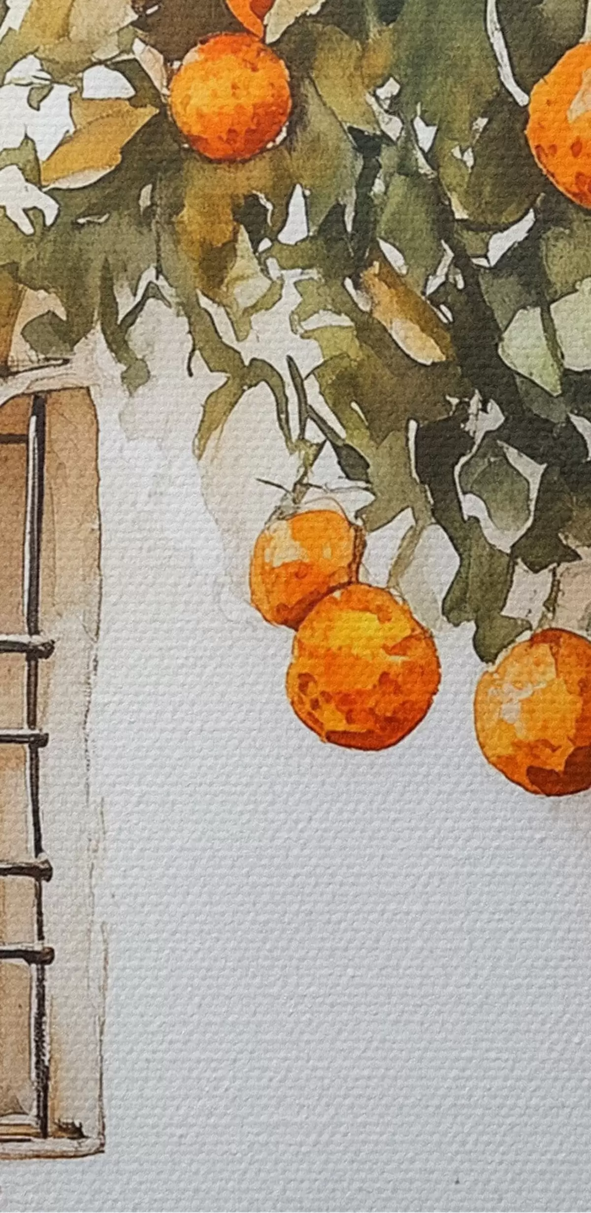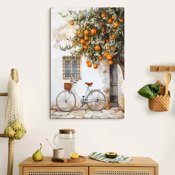 Glezna Vidusjūras balta māja ar apelsīnu koku un velosipēdu Nr s44610