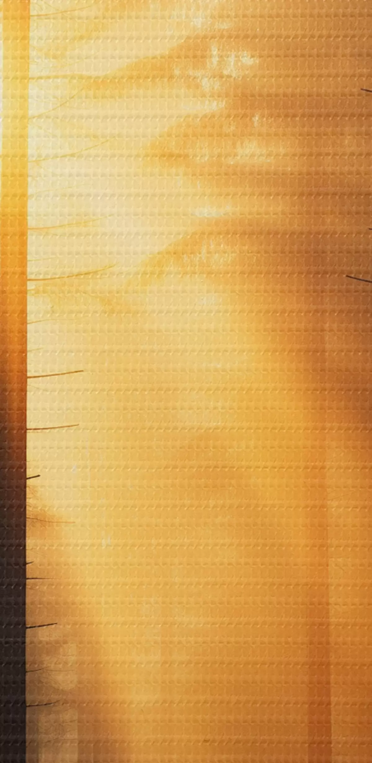 Smalkais diegu pinums uz šī audekla atgādina profesionālu mākslinieku audeklu virsmu.