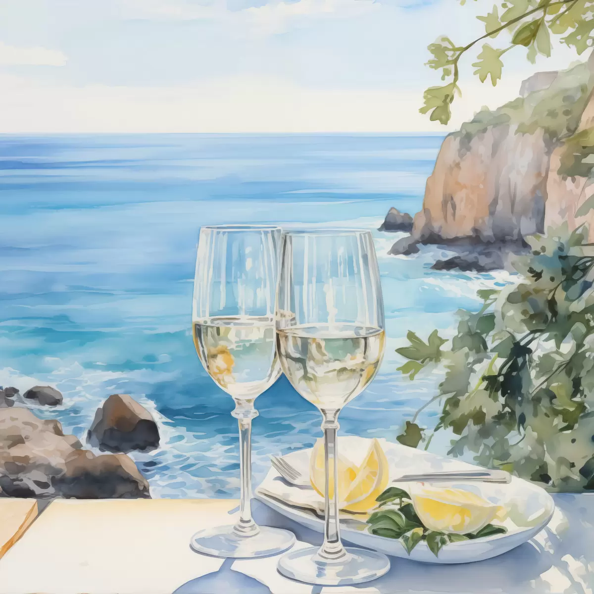 Glezna Vīna glāzes pret jūru Nr s44644