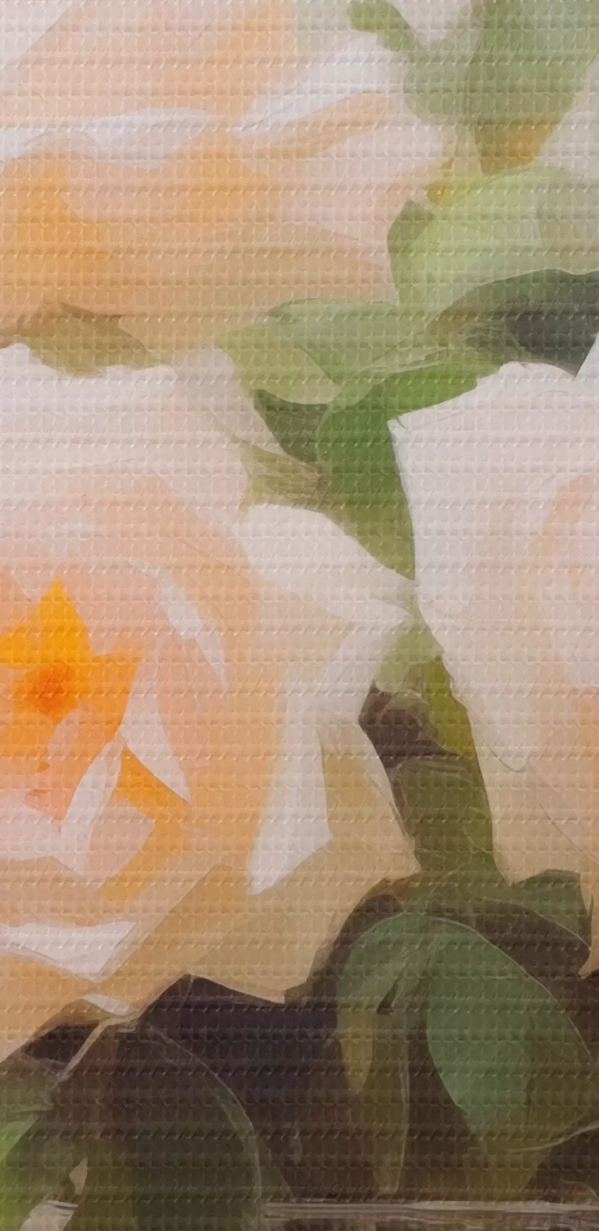 Smalkais diegu pinums uz šī audekla atgādina profesionālu mākslinieku audeklu virsmu.