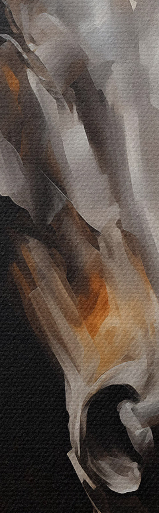 Smalkais diegu pinums uz šī audekla atgādina profesionālu mākslinieku audeklu virsmu.