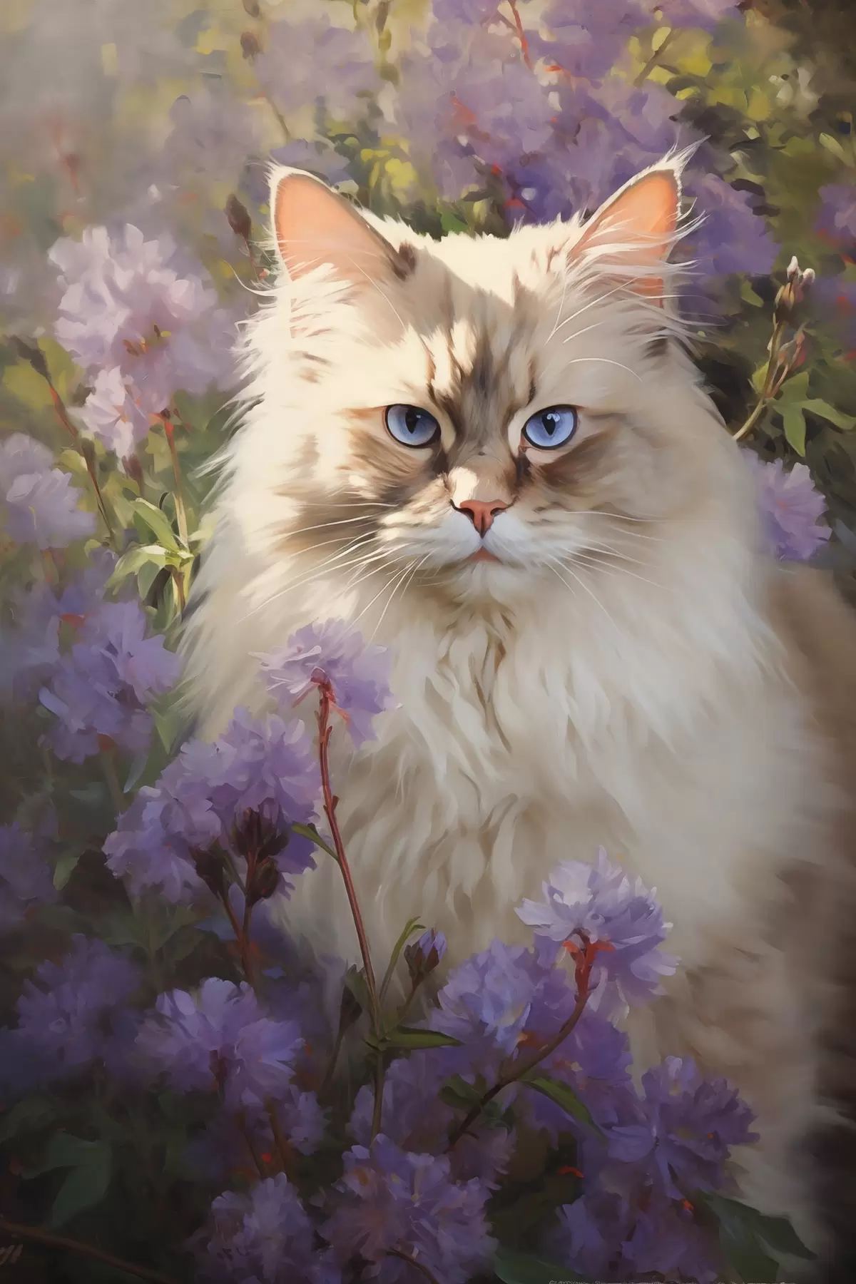 Glezna Kaķis ziedos s44663