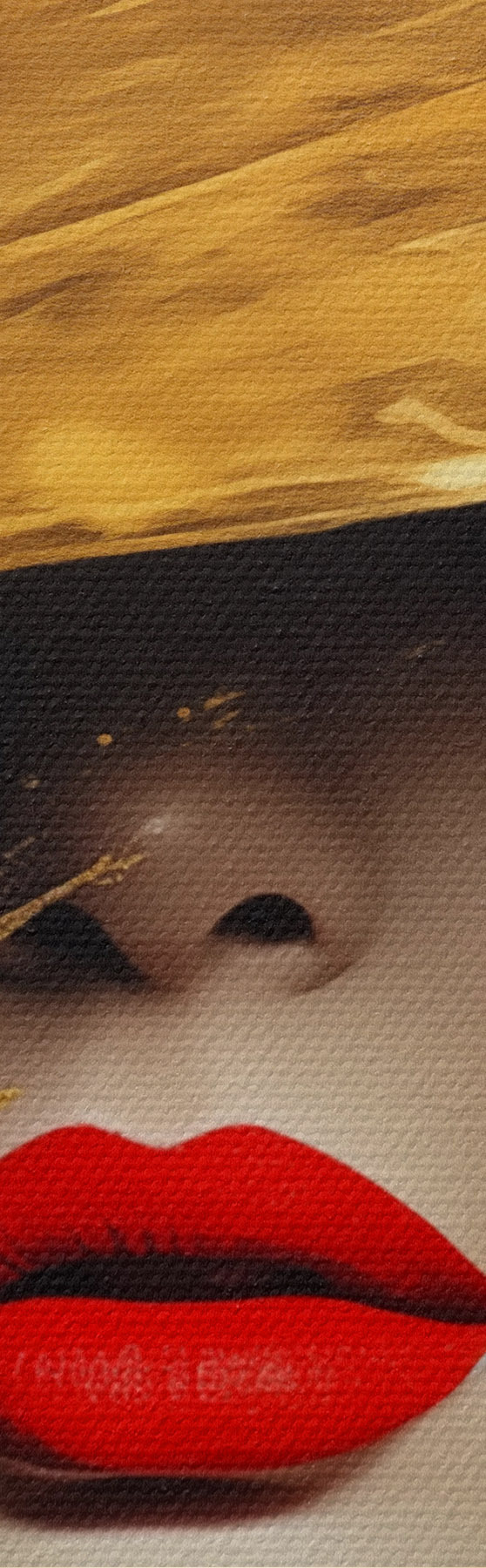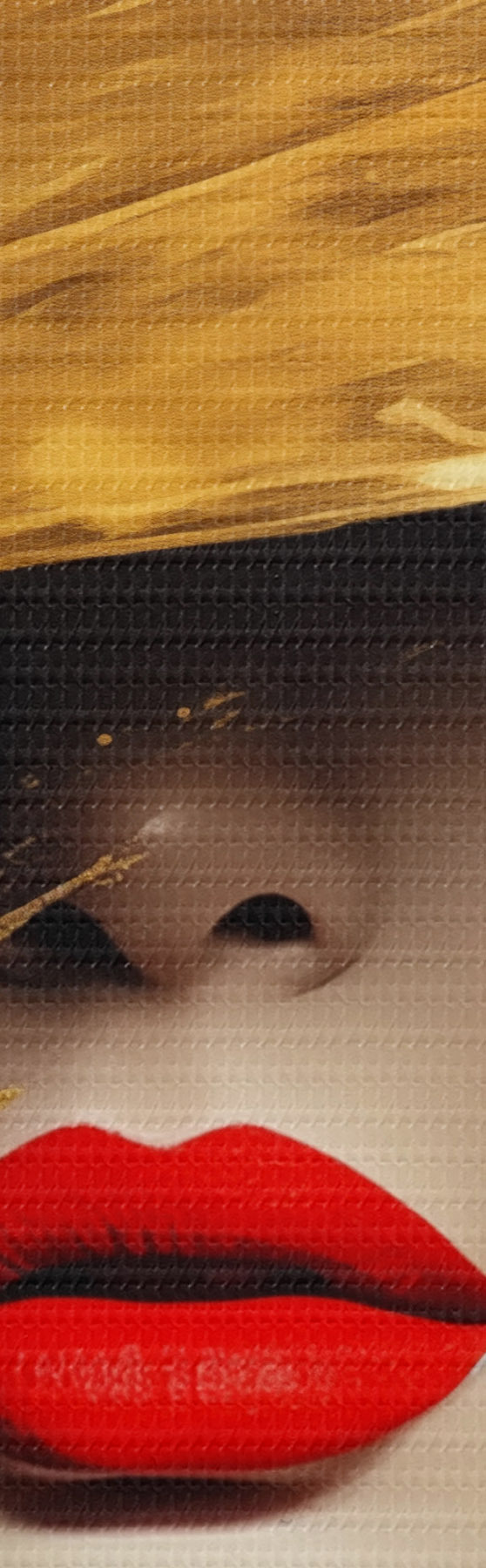 Glezna Sievietes seja ar sarkanu lūpu krāsu zem platas cepures Nr s44691