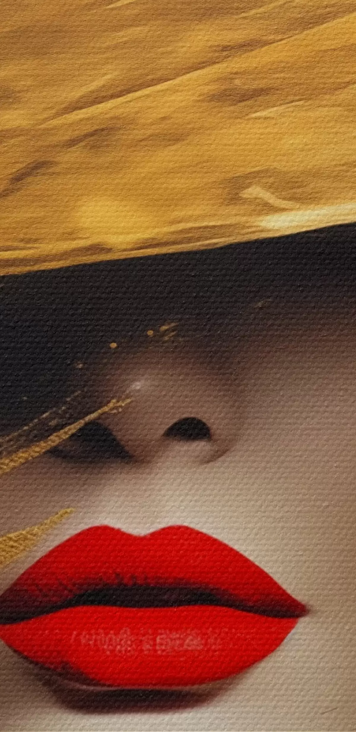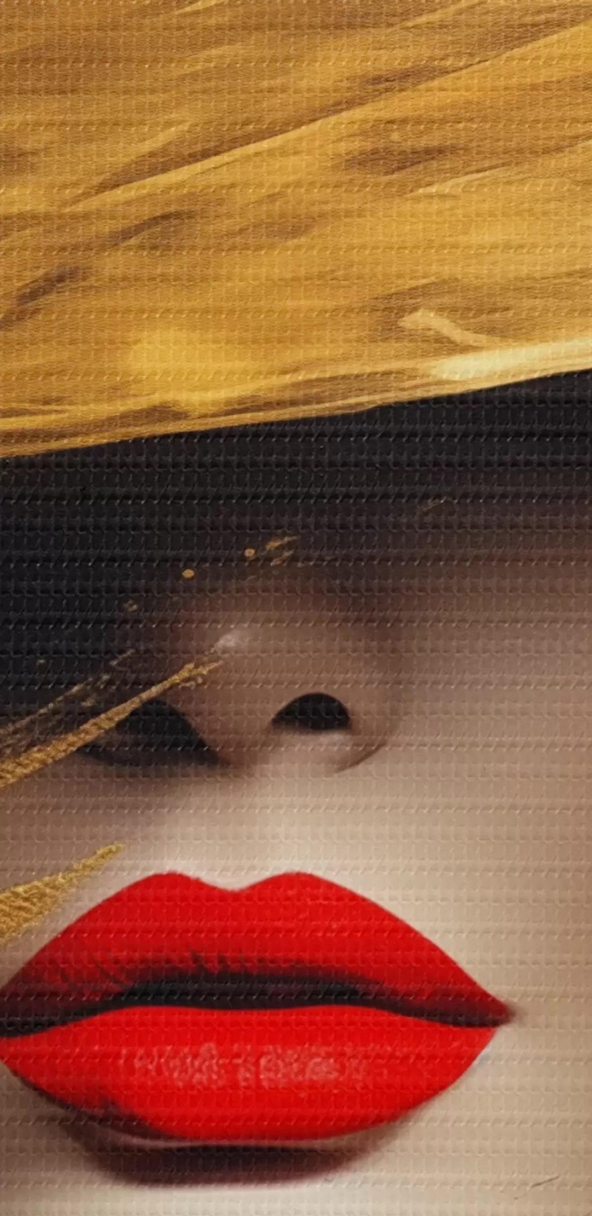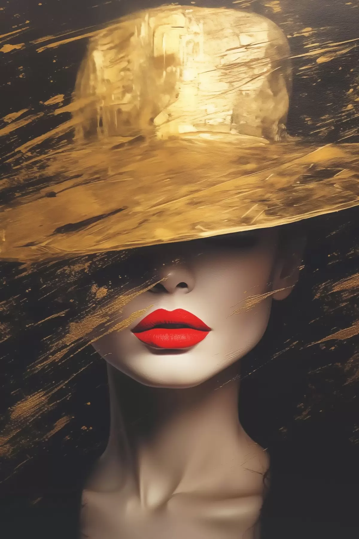 Glezna Sievietes seja ar sarkanu lūpu krāsu zem platas cepures Nr s44691