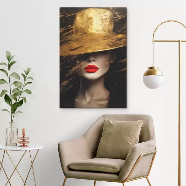 Glezna Sievietes seja ar sarkanu lūpu krāsu zem platas cepures s44691
