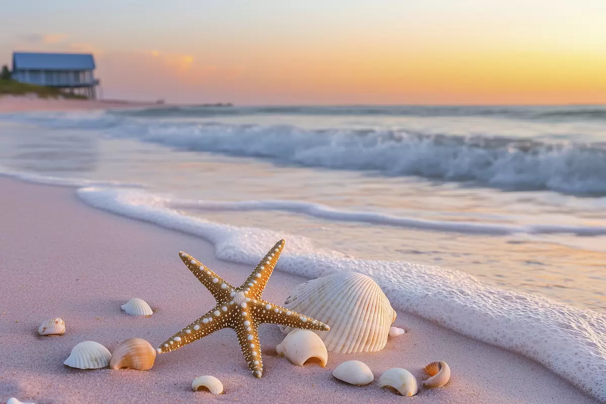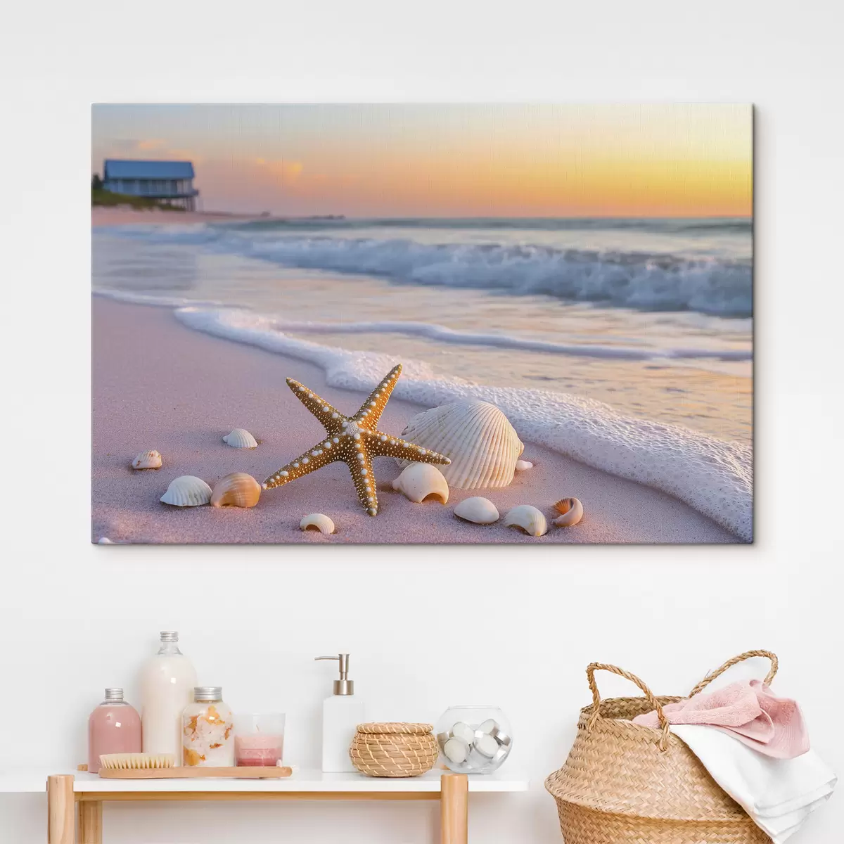 Glezna Jūras piekraste ar jūras zvaigznēm, gliemežvākiem un viļņiem Nr s44714