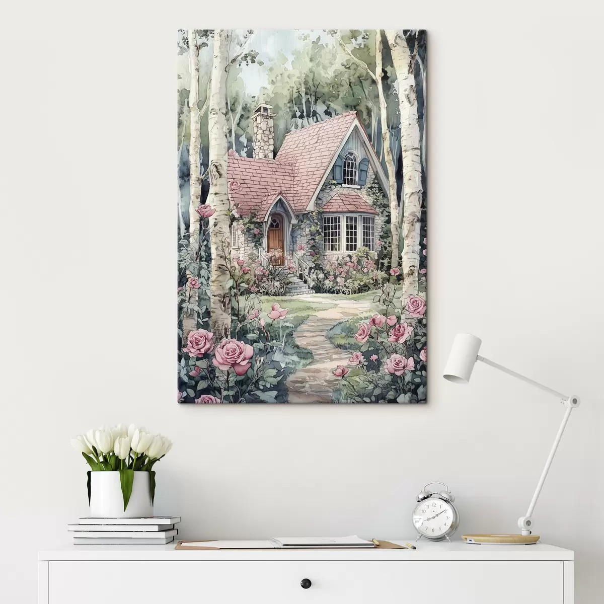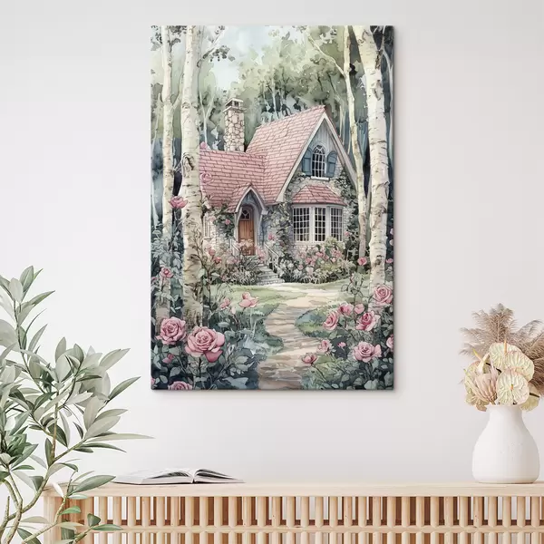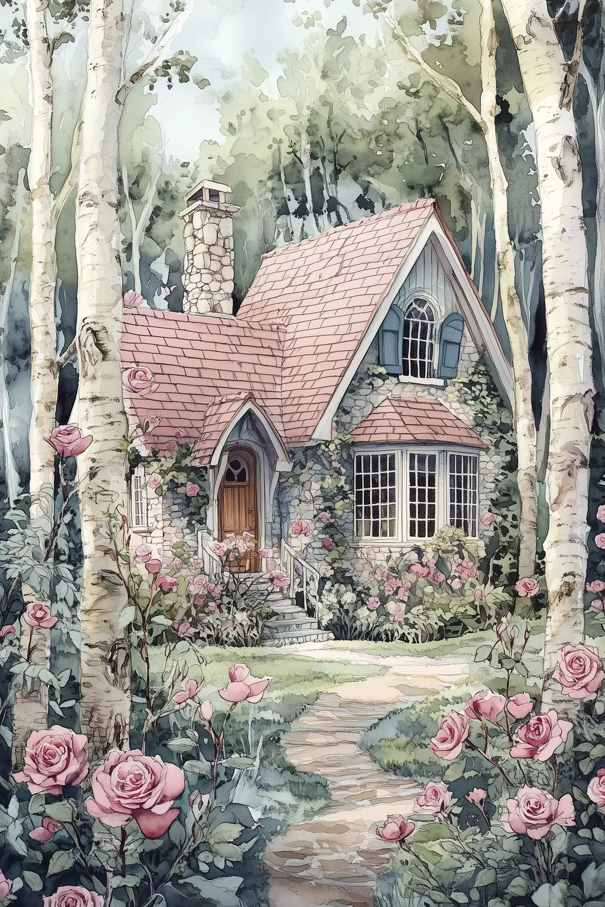 Glezna Skaista māja bērzu birzī, rožu dārzs Nr s44721