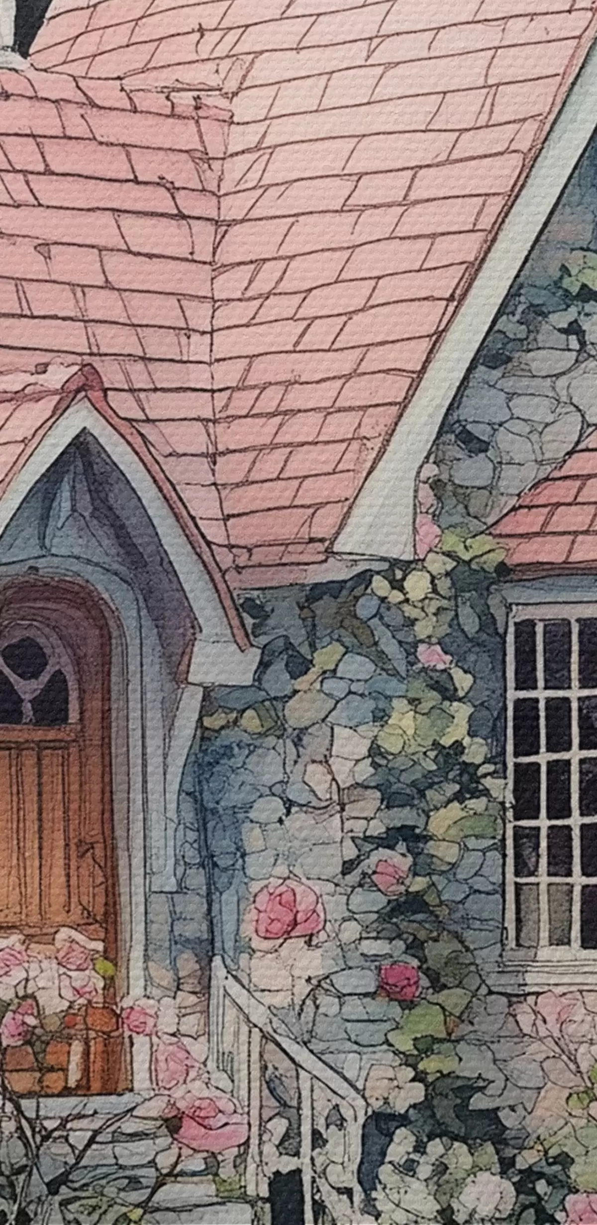 Glezna Skaista māja bērzu birzī, rožu dārzs s44721