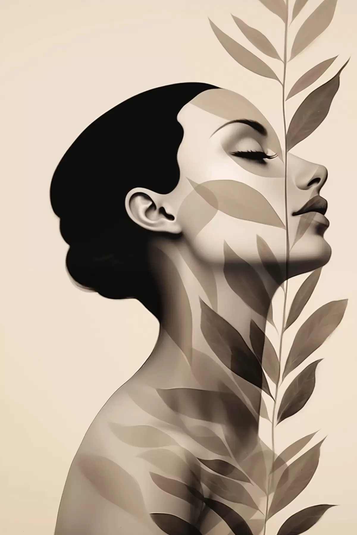 Glezna Sievietes profils ar ziedu rakstu Nr s44725