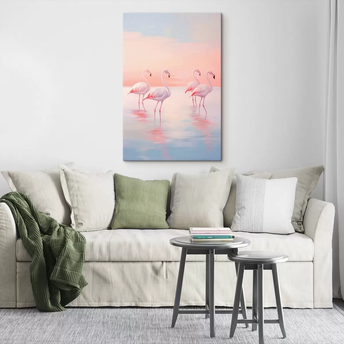 Glezna Flamingi seklā ūdenī saulrieta laikā s44732