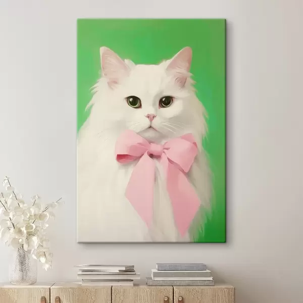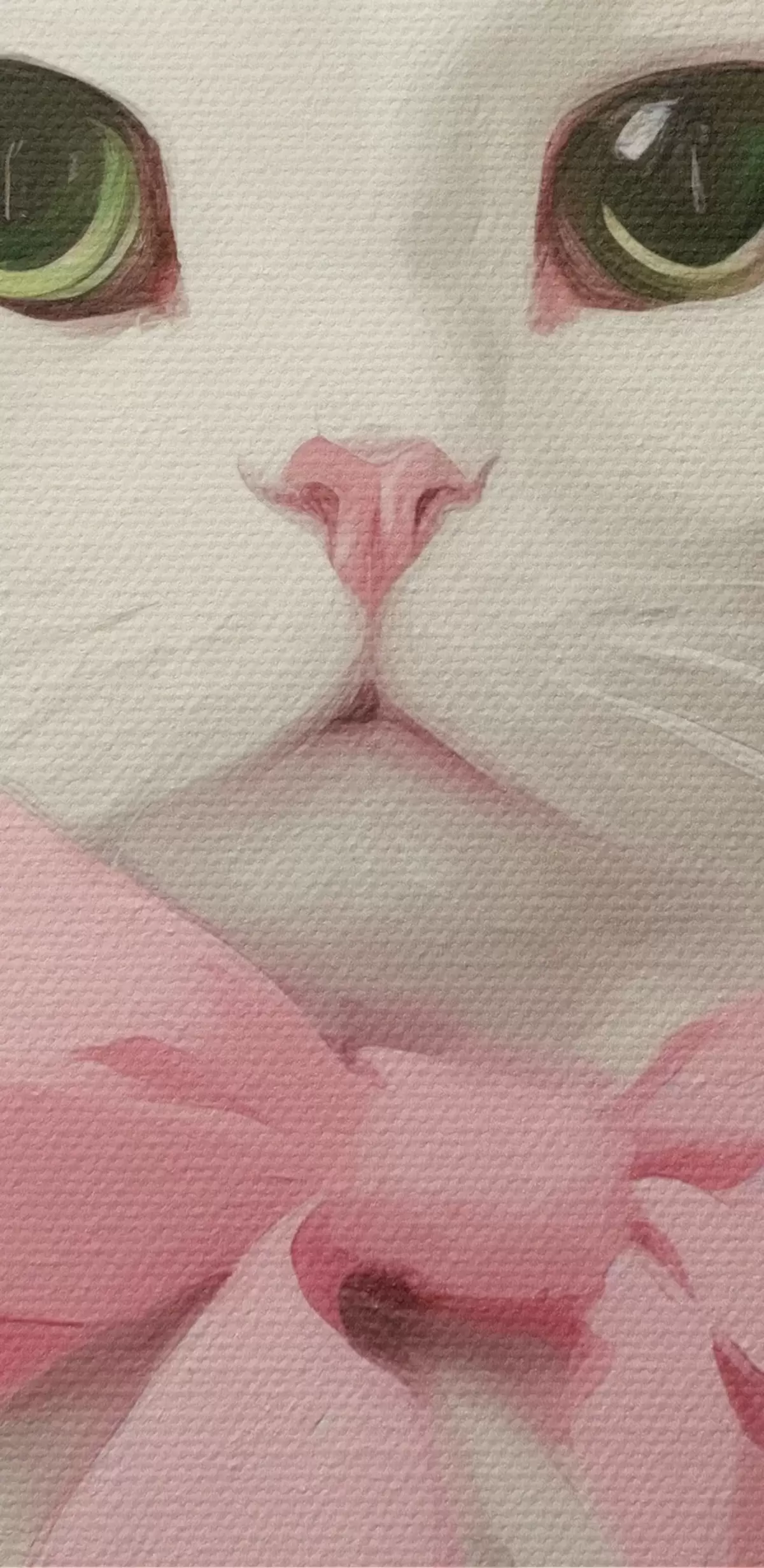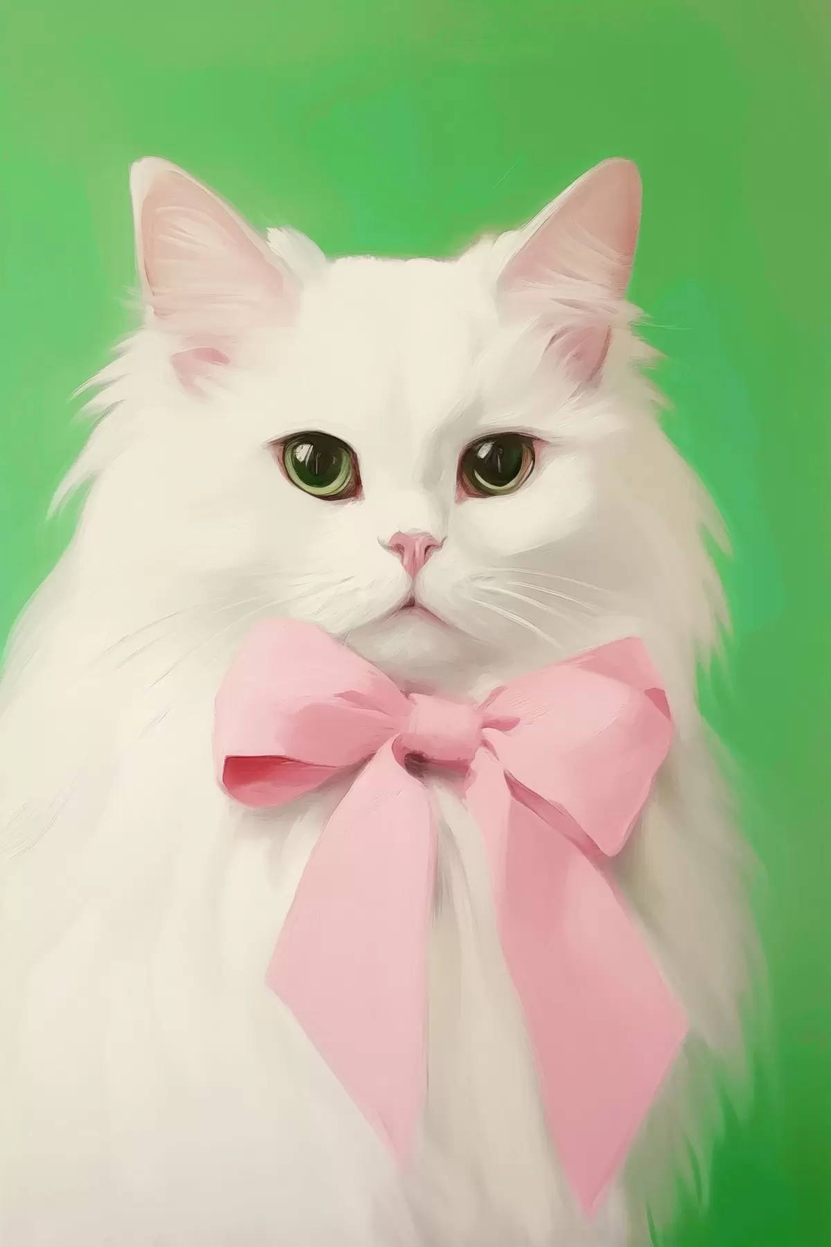 Glezna Balts kaķis ar rozā loku Nr s44739