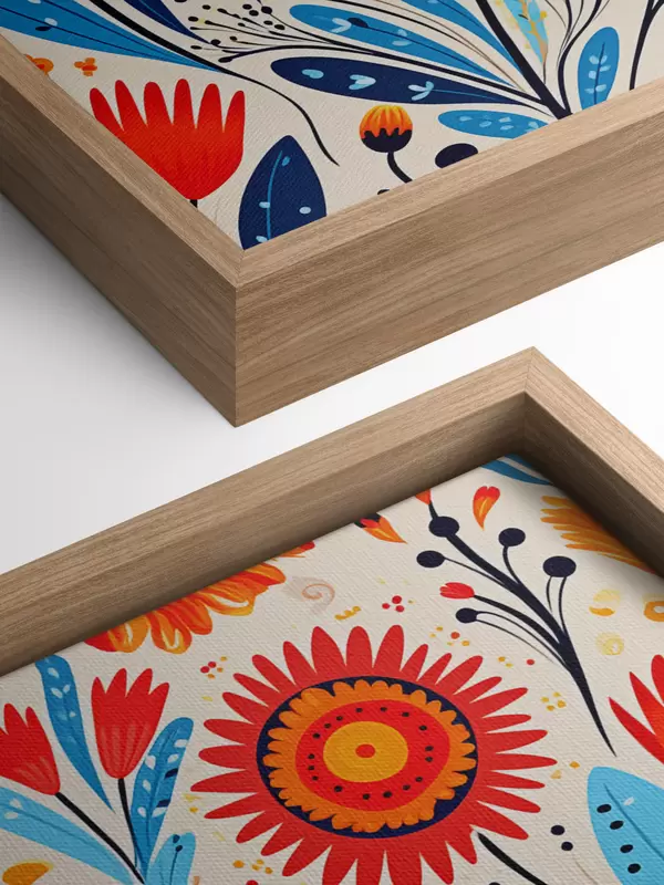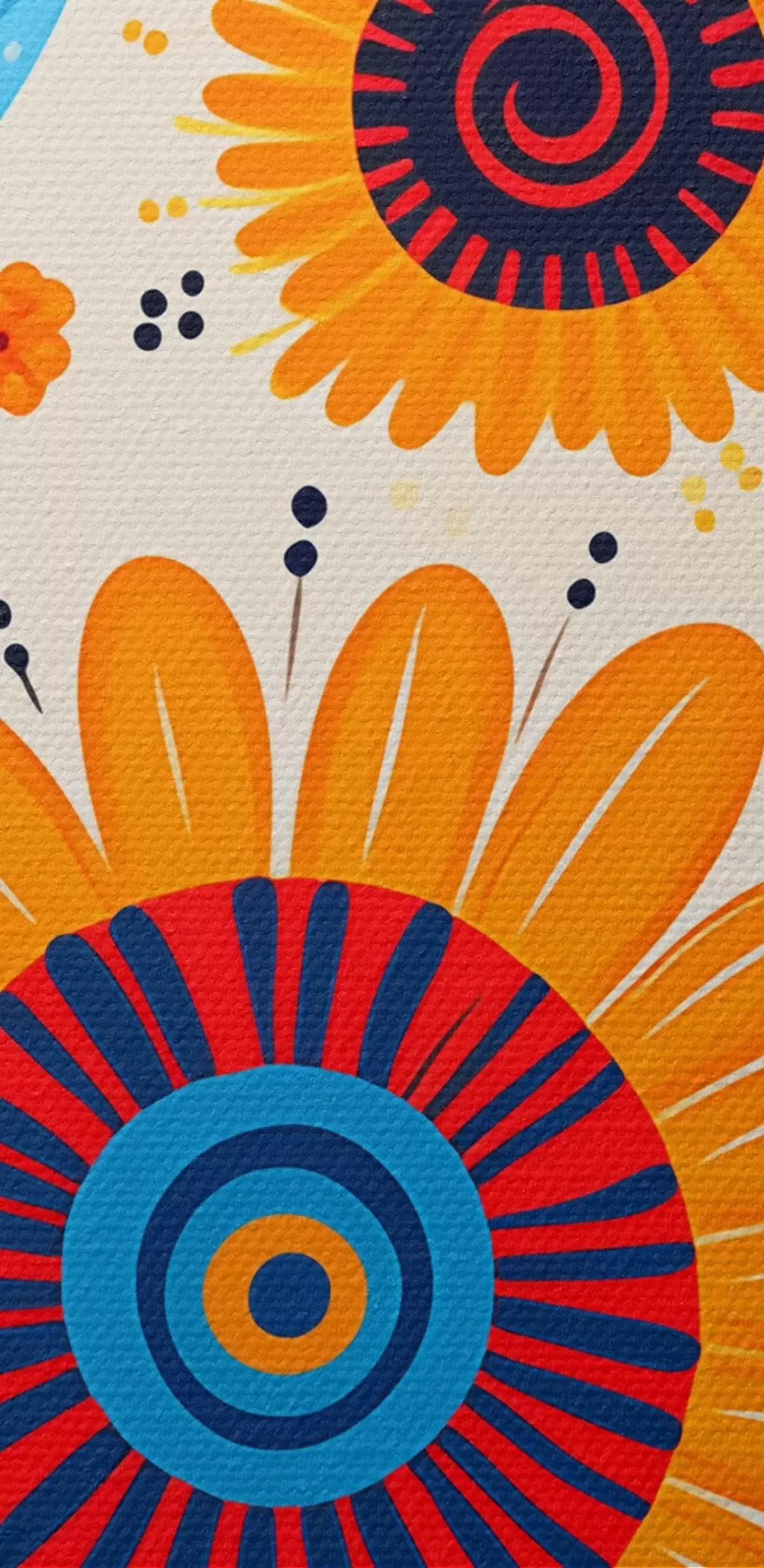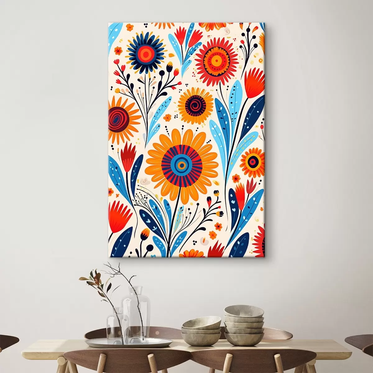Glezna Stilizēti ziedi zilā un oranžā paletē s44761