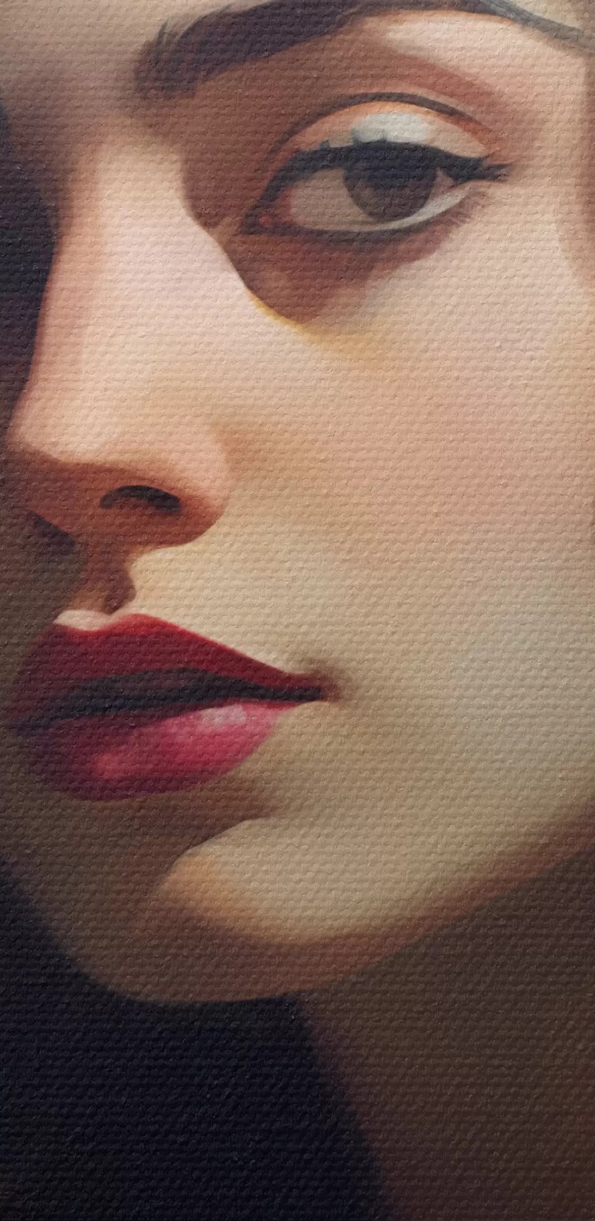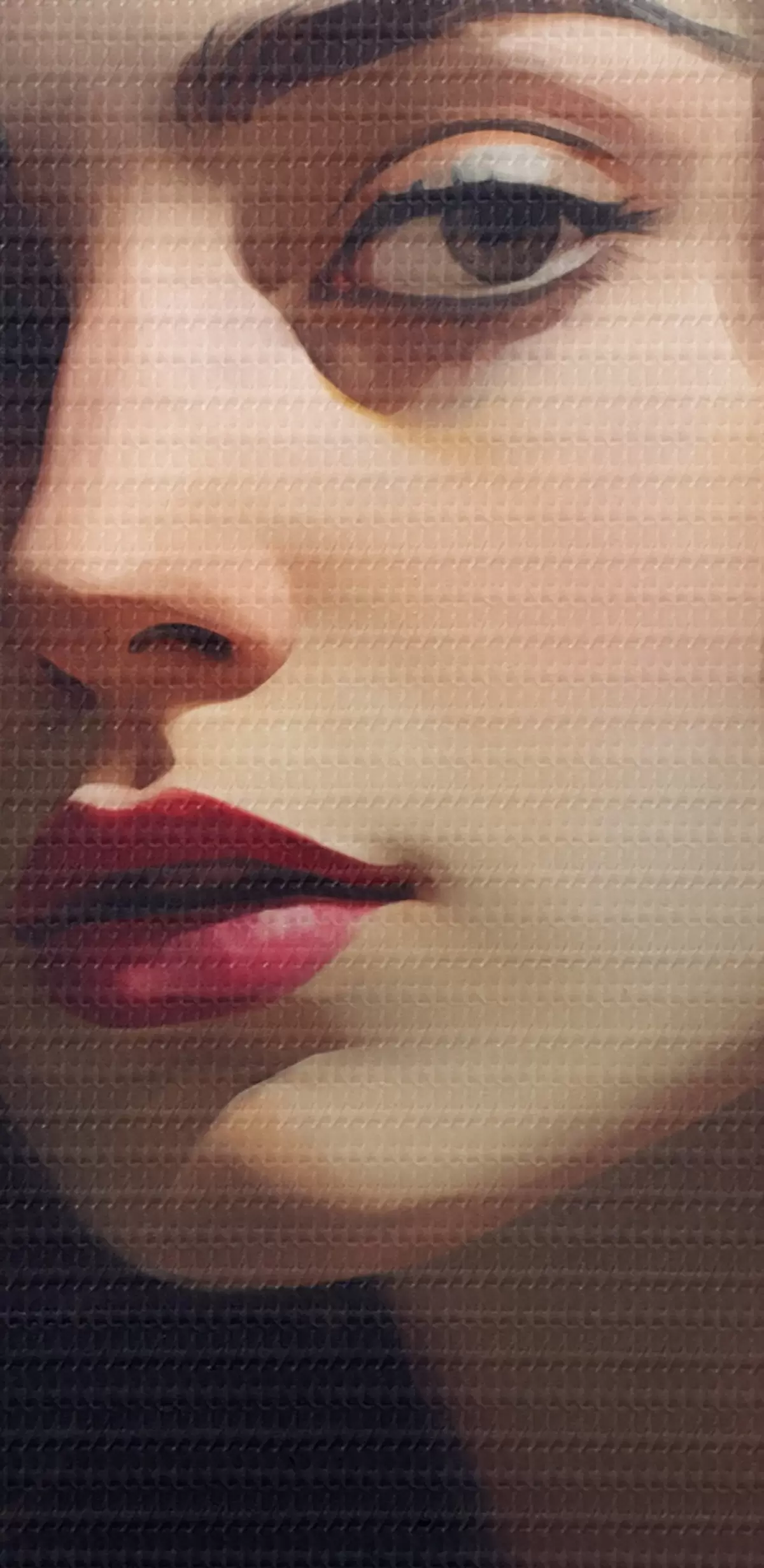 Smalkais diegu pinums uz šī audekla atgādina profesionālu mākslinieku audeklu virsmu.