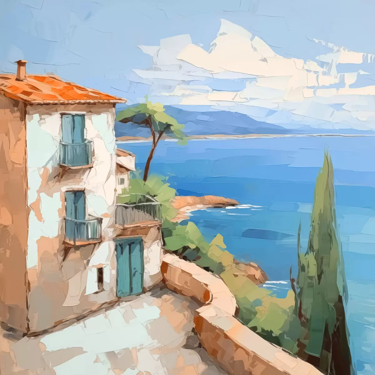 Glezna Māja pie jūras glezniecības imitācija s44767