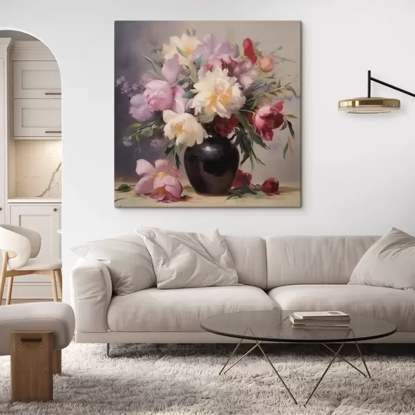 Glezna Peoniju pušķis tumšā vāzē Nr s44769