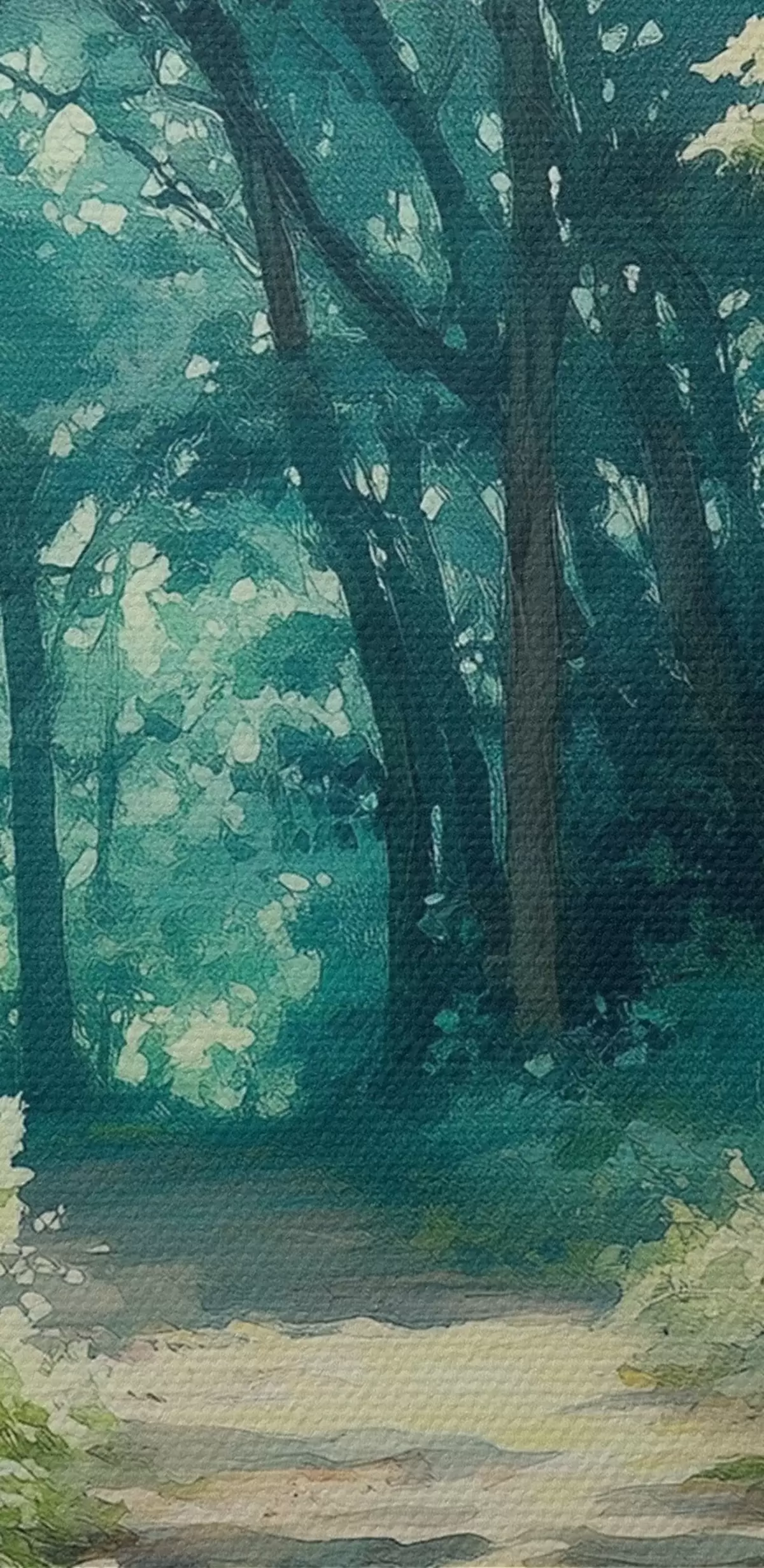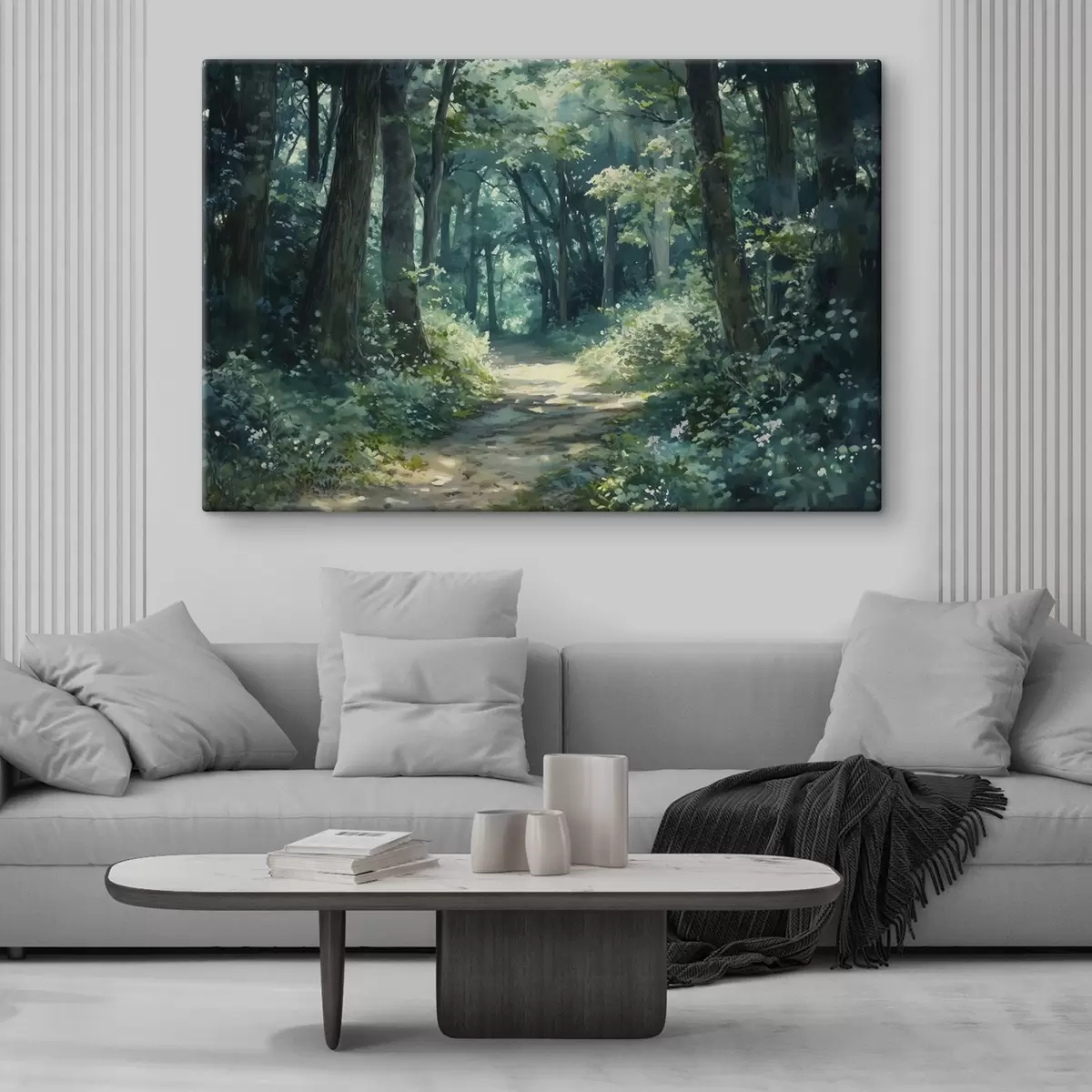 Glezna Zaļš mežs ar kokiem un saules gaismu  s44784