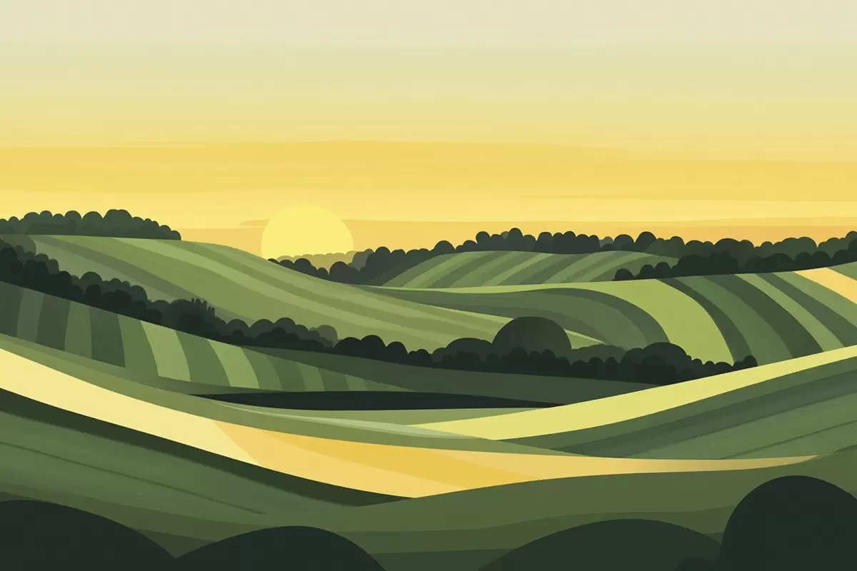 Glezna Abstraktas ainavas ar kalniem un saulrietu  s44785