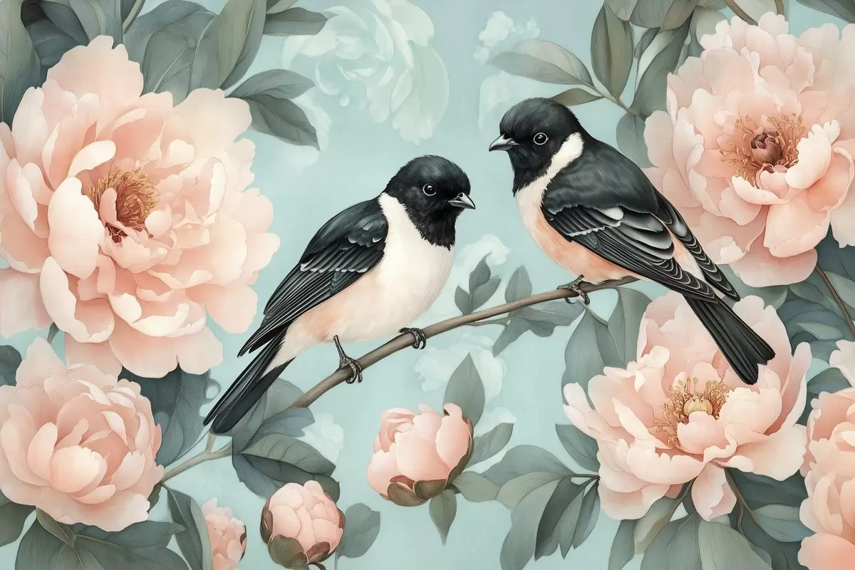 Glezna Divi putni uz zara ar peonijām Nr s44786