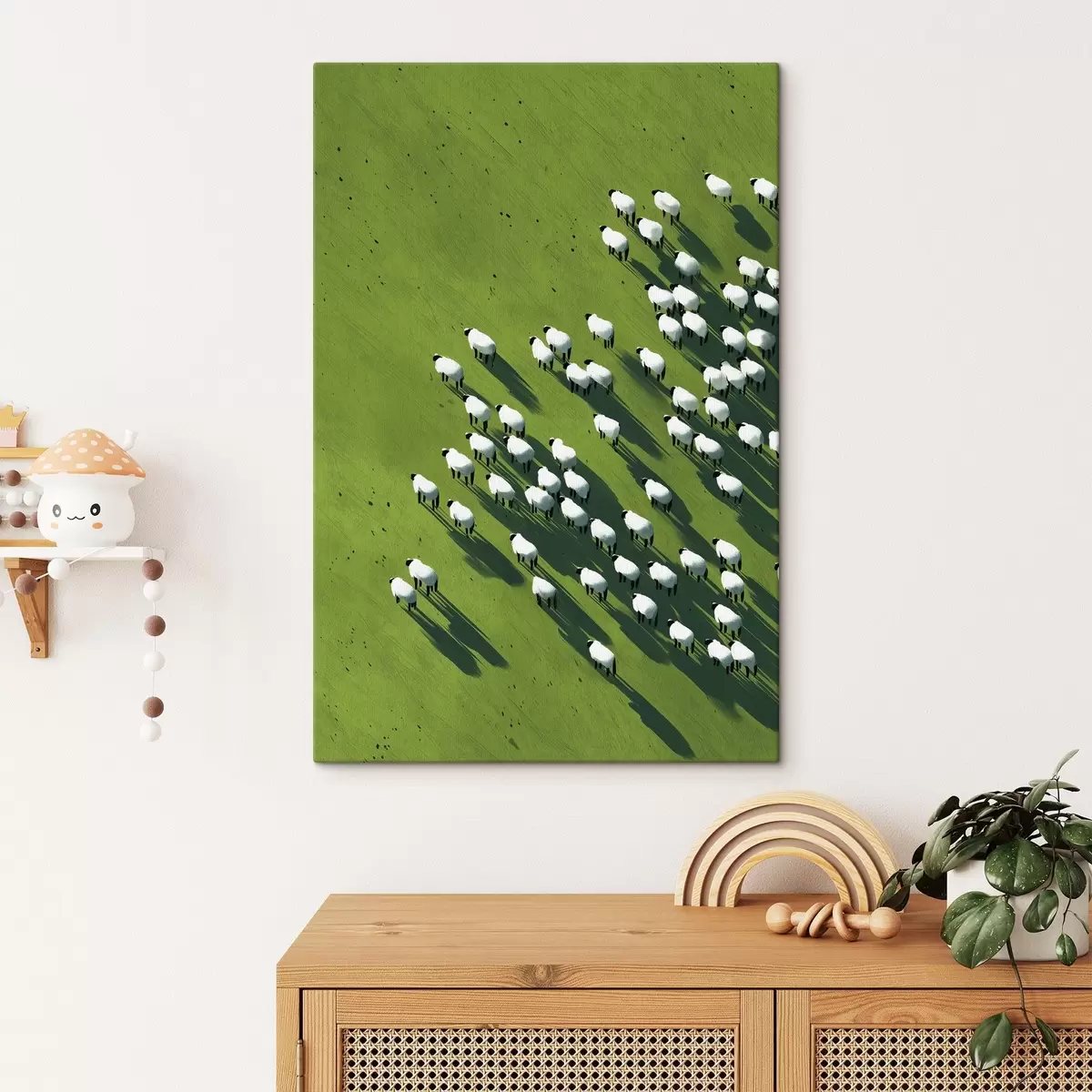 Glezna Zaļš lauks ar aitu ganāmpulku, abstrakcija, skats no gaisa Nr s44793