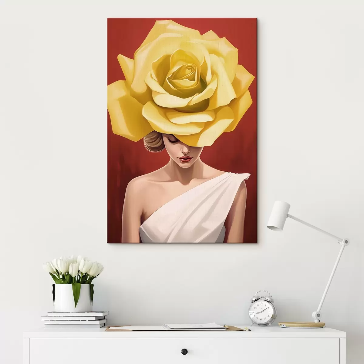 Glezna Sieviete ar dzeltenu rožu cepuri s44800