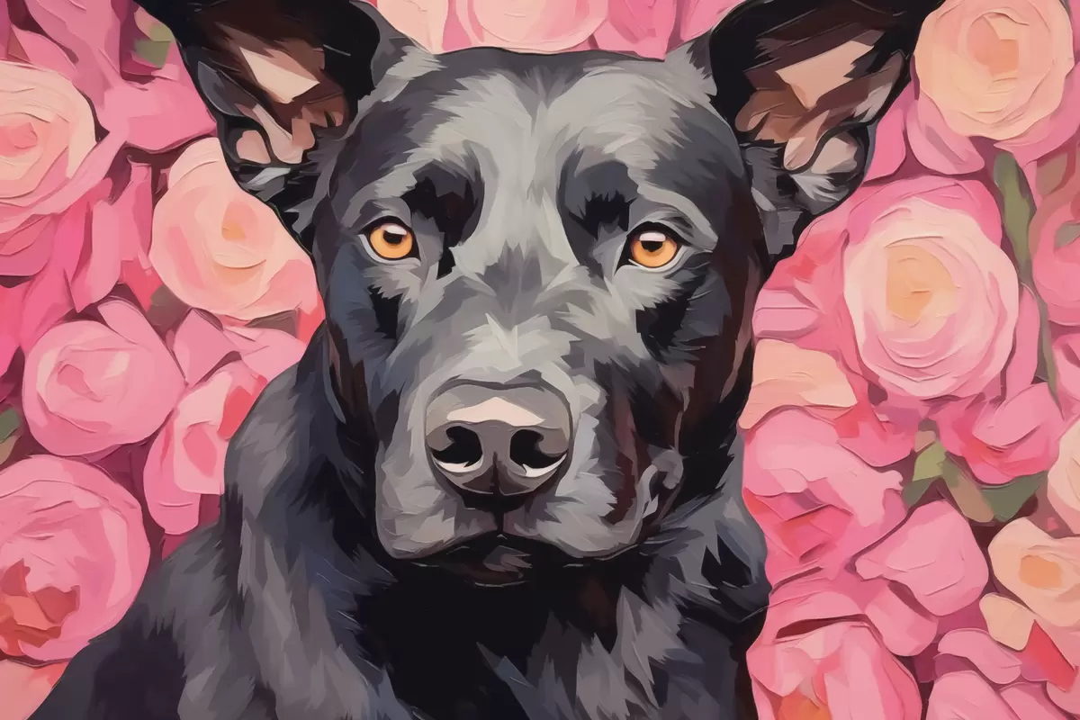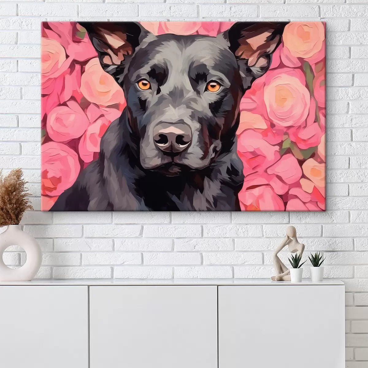 Glezna Melns suns uz abstrakta rožu fona Nr s44817
