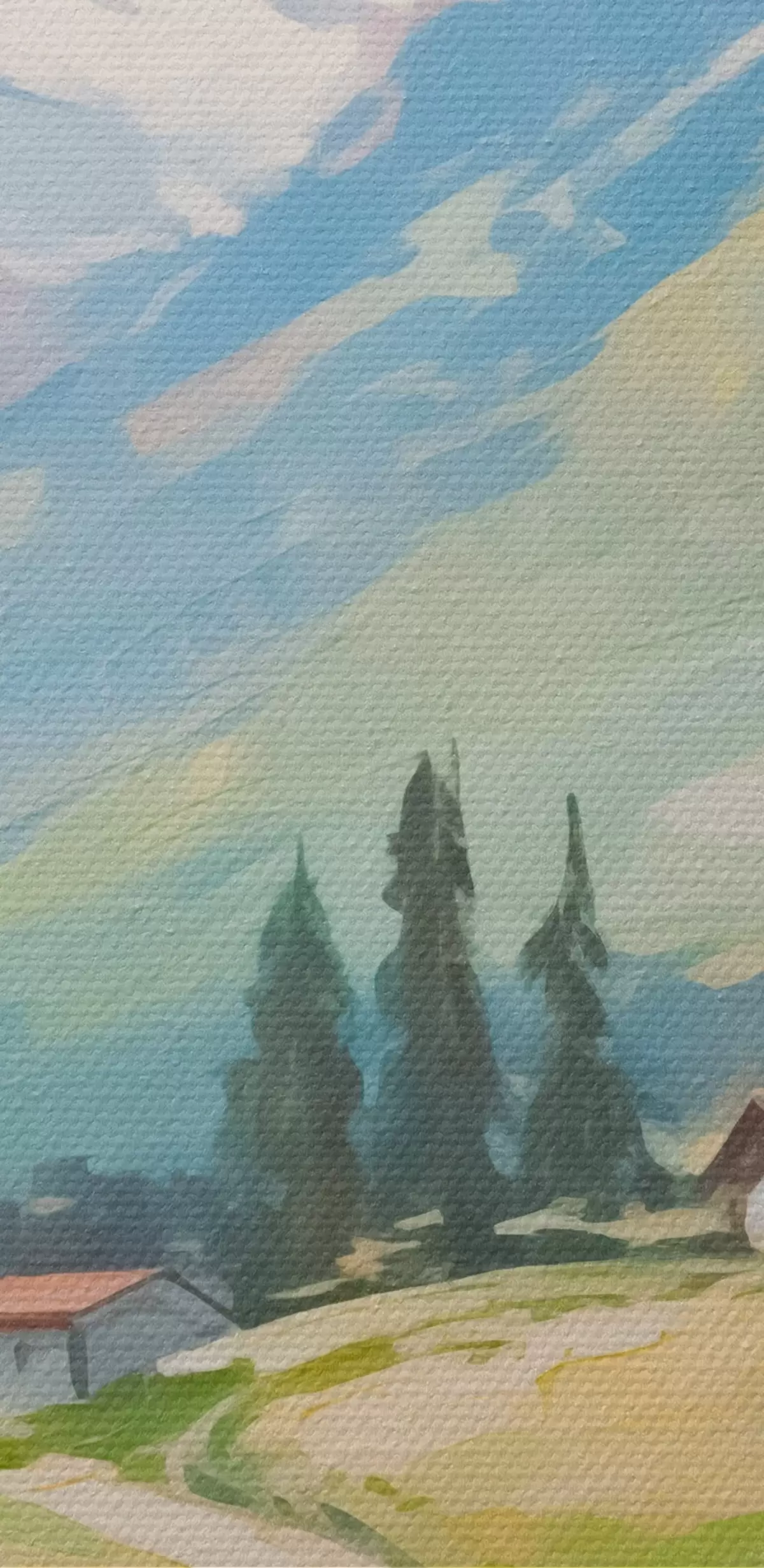 Glezna ir iekārtojama uzreiz pēc tās saņemšanas. Glezna tiks izstiepta uz 2 cm platām koka nestuvēm.