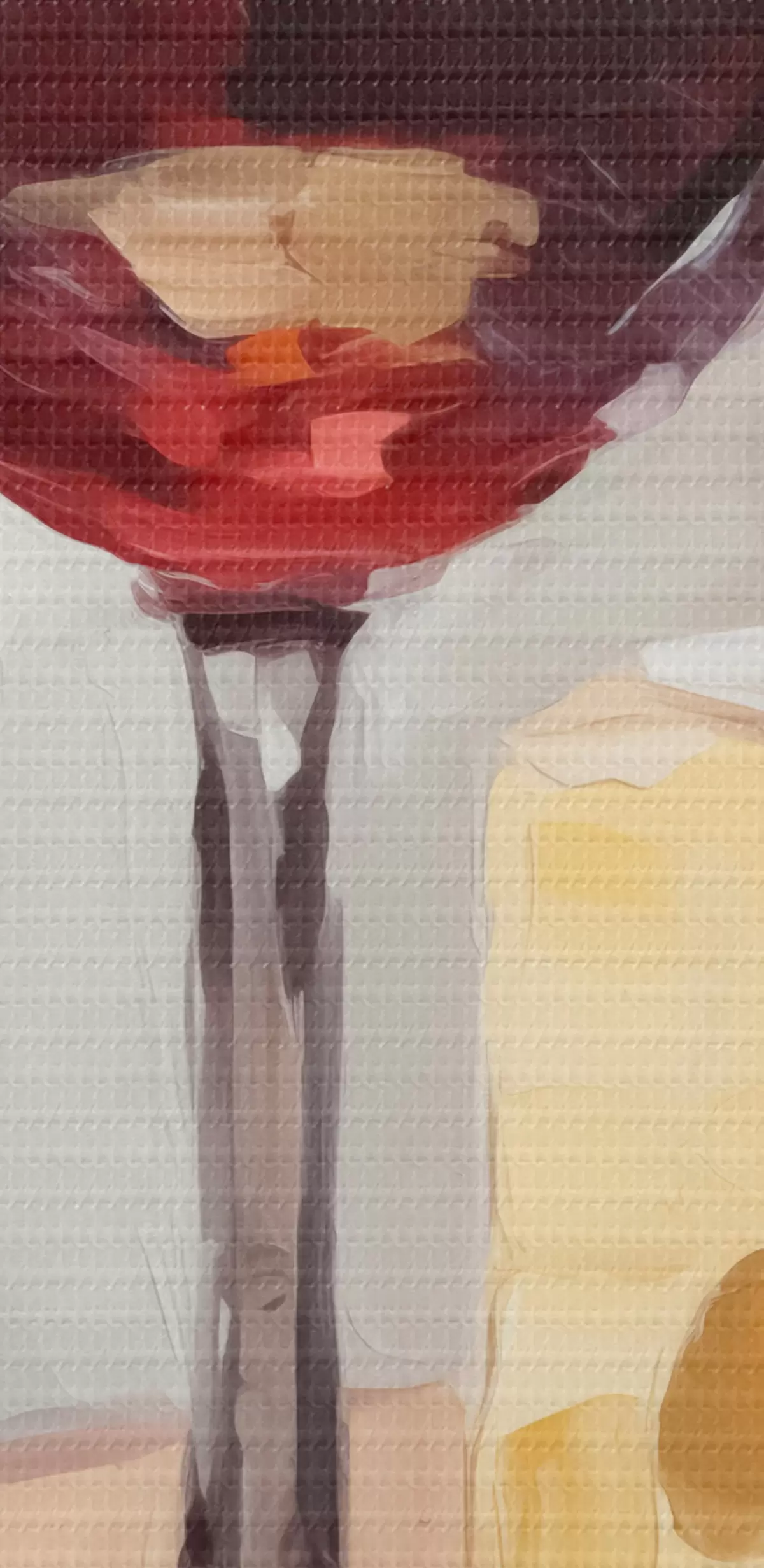 Smalkais diegu pinums uz šī audekla atgādina profesionālu mākslinieku audeklu virsmu.