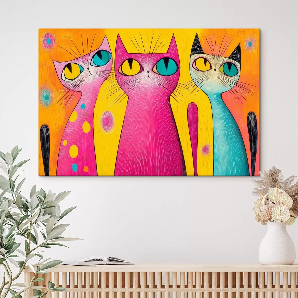 Glezna Rotaļīgi kaķi ar lielām acīm mākslas stilā s44845