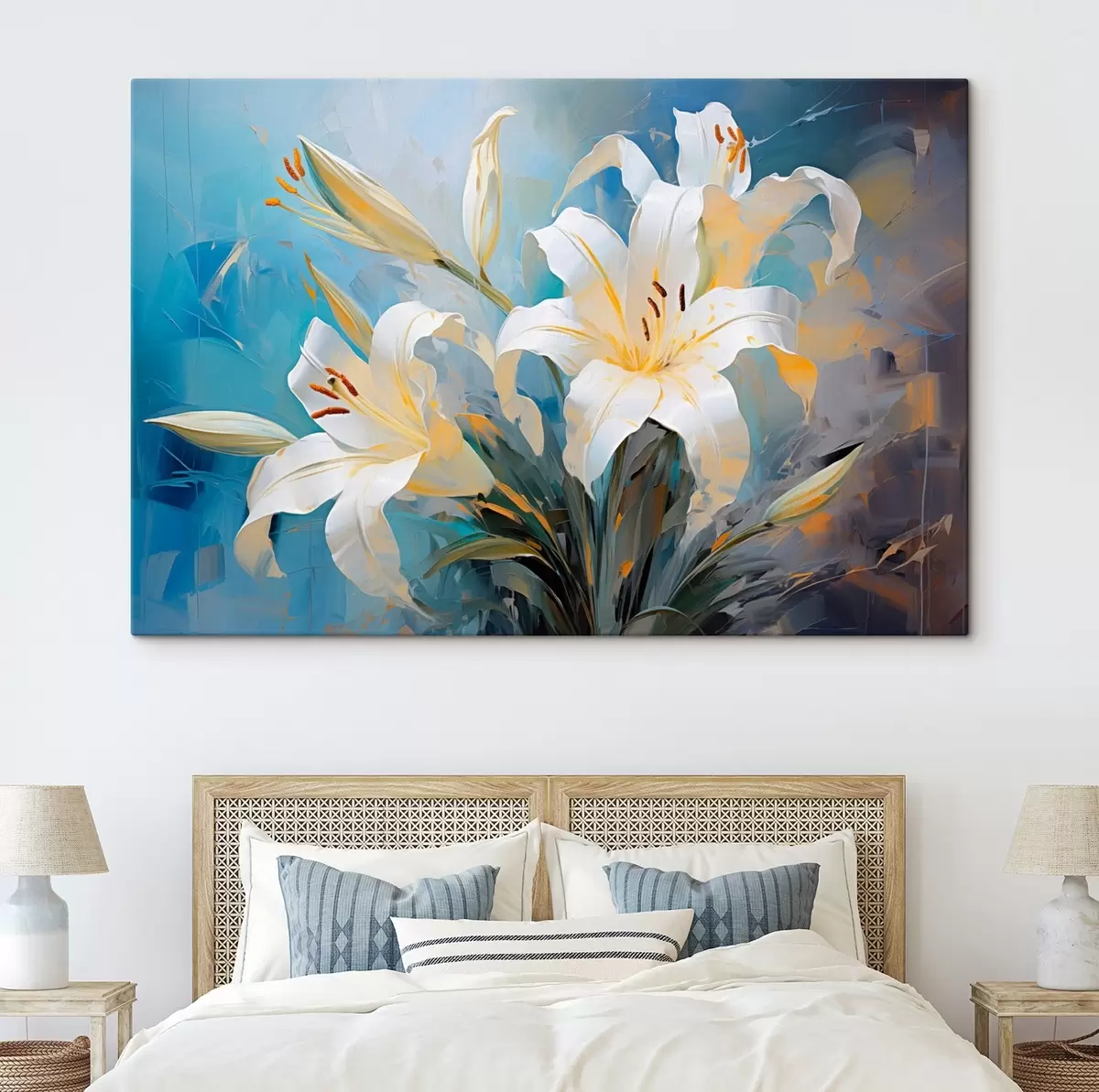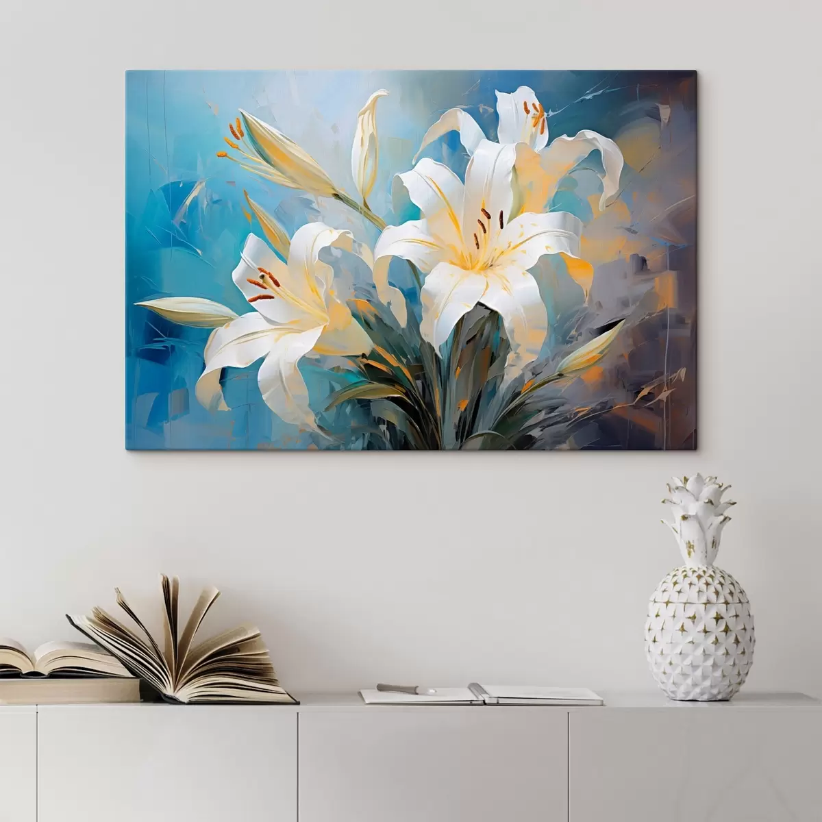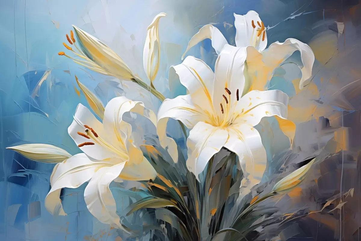 Glezna Abstraktas lilijas uz krāsaina fona mākslas stilā s44849