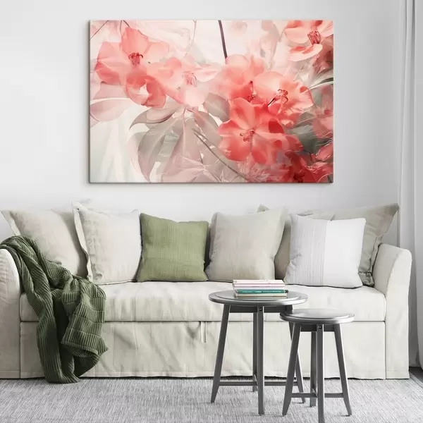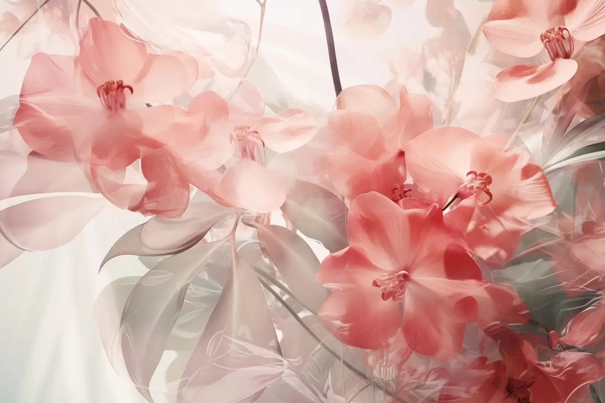Glezna Dzirkstoši rozā tropu ziedi ar maigām, maigi zaļām lapām, veidojot sapņaini maigu tekstūru Nr s44861