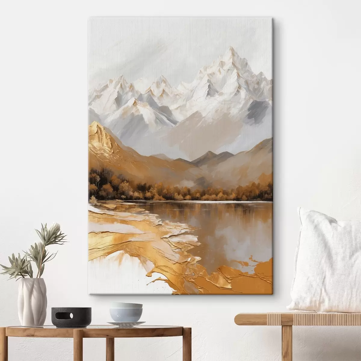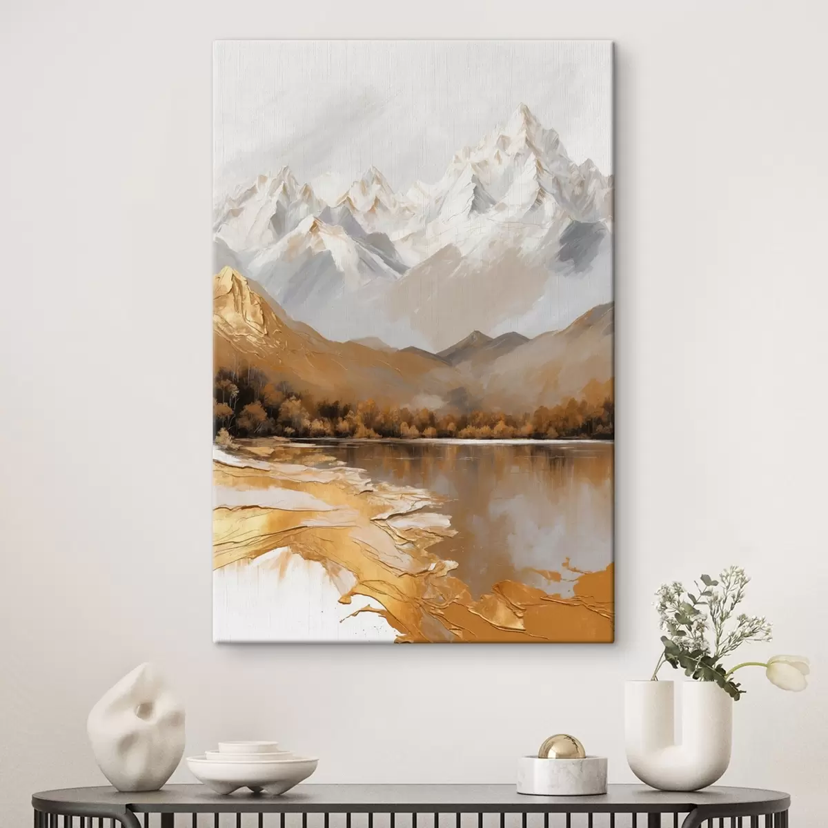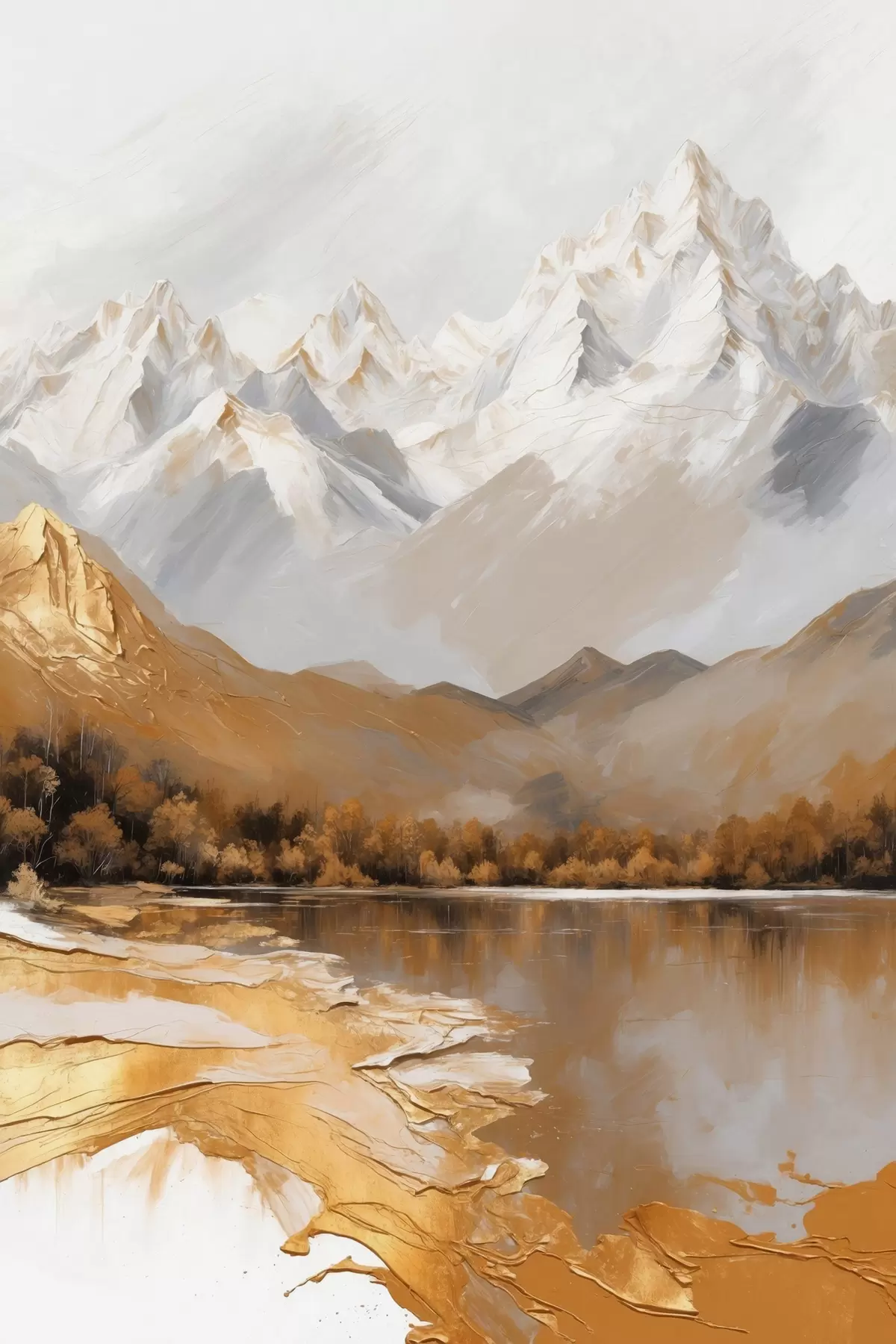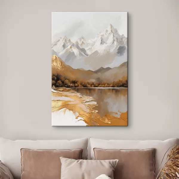 Glezna Kalnu ainava ar ezeru siltās krāsās s44877