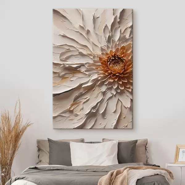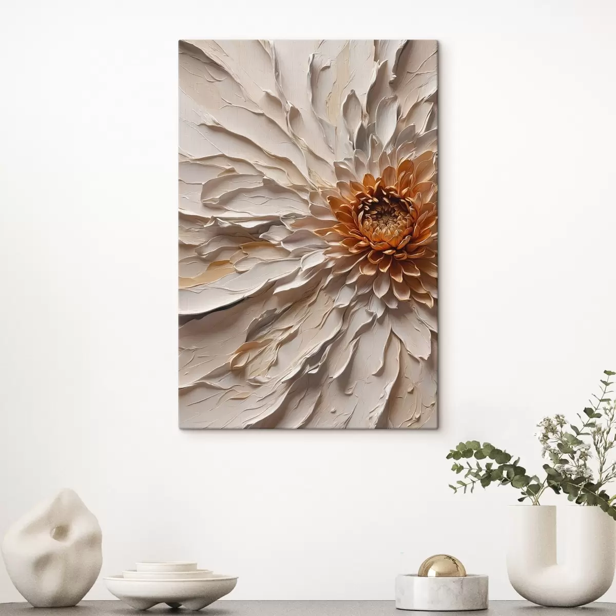 Glezna Apjomīgs zieds ar krēmīgām ziedlapiņām un siltu kodolu Nr s44878
