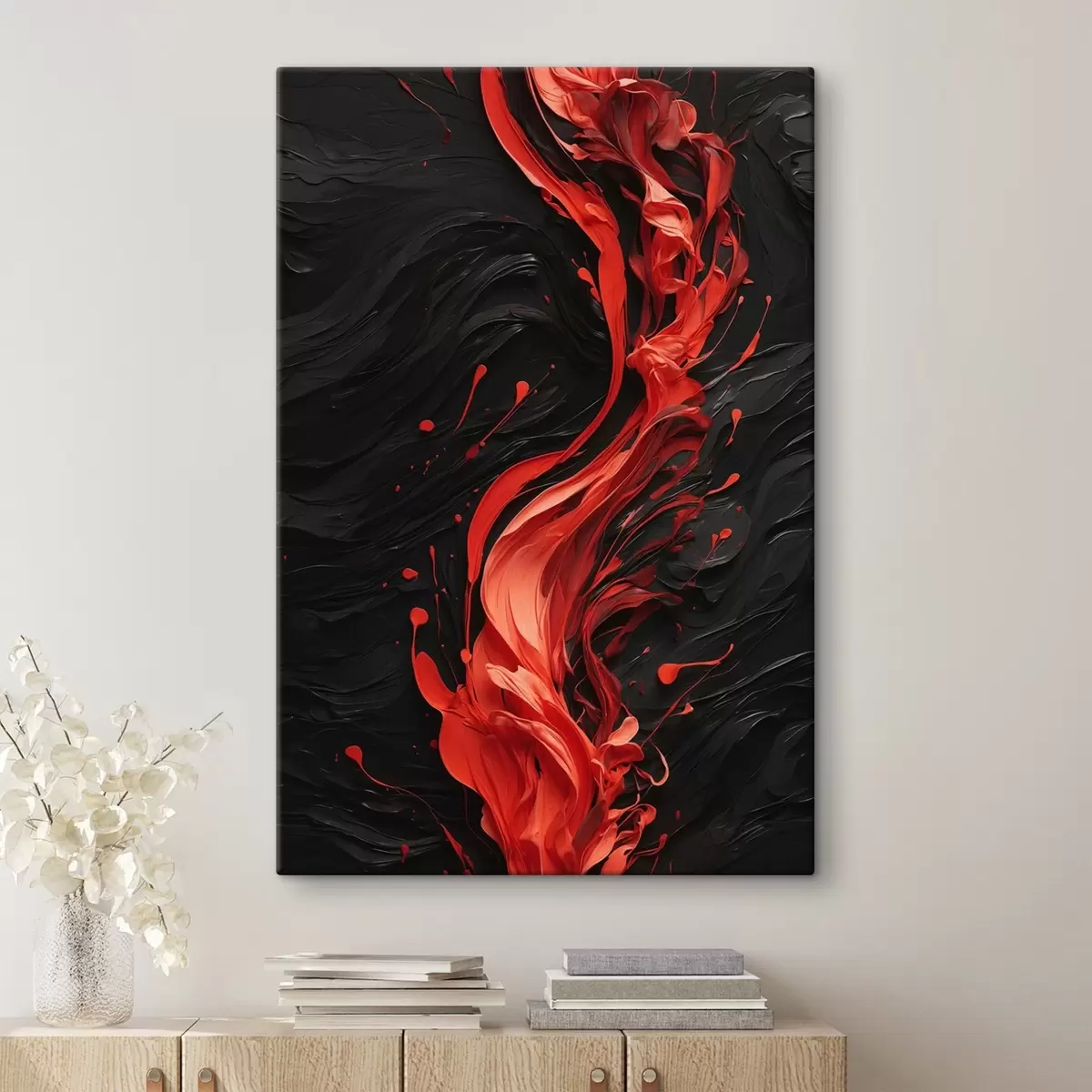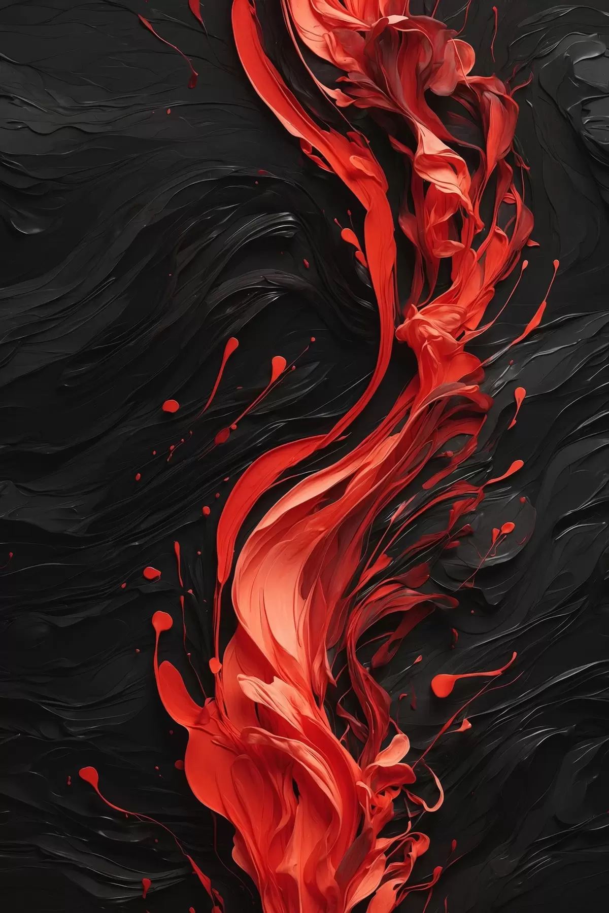 Glezna Sarkana krāsas straume uz melna abstrakta fona Nr s44889