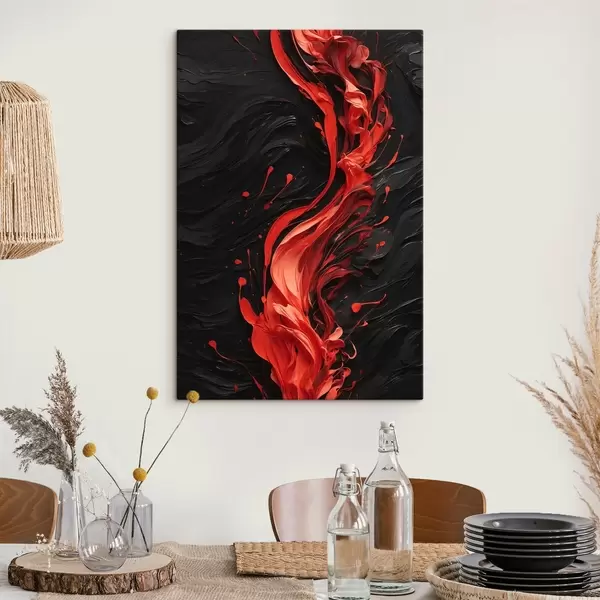 Glezna Sarkana krāsas straume uz melna abstrakta fona Nr s44889