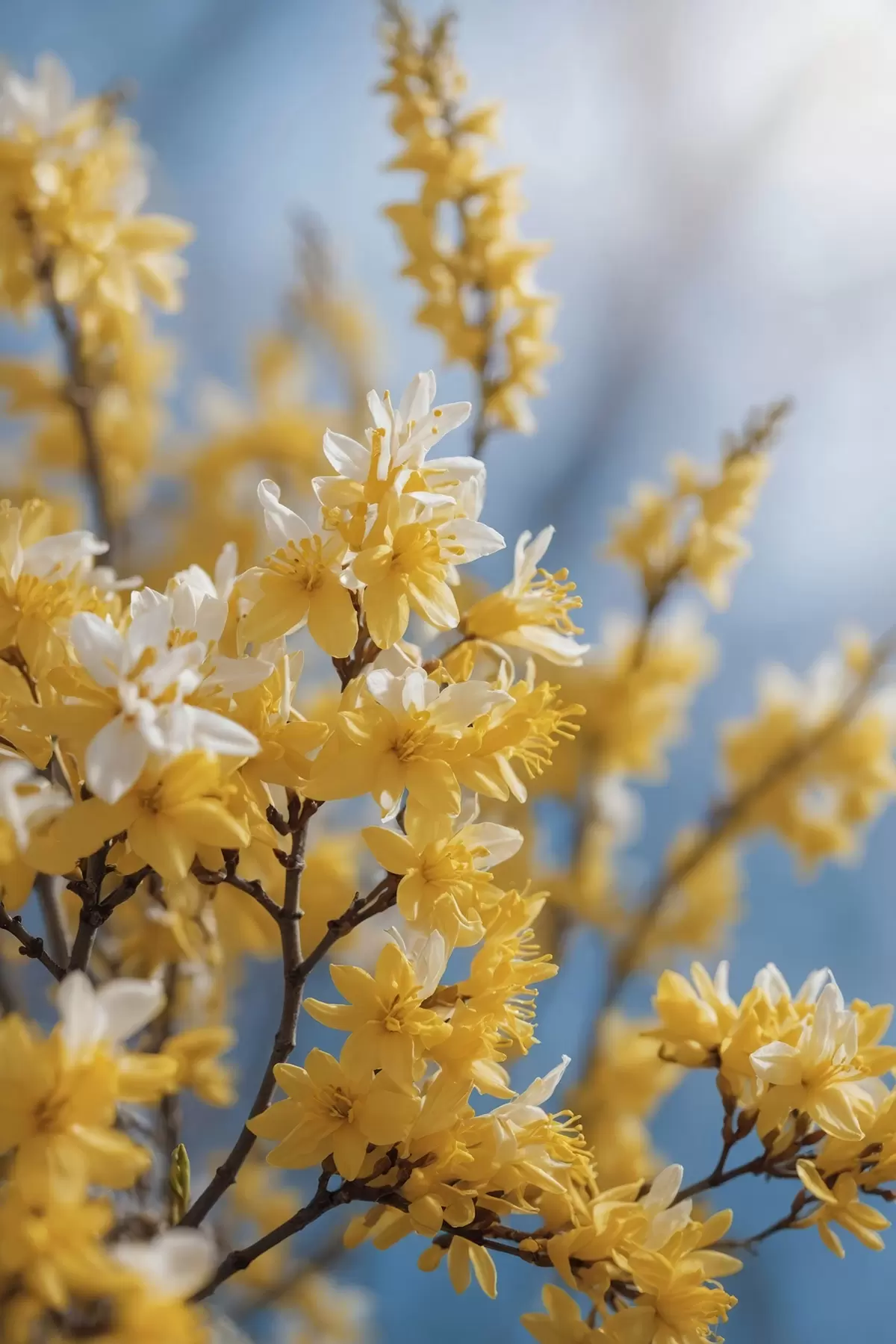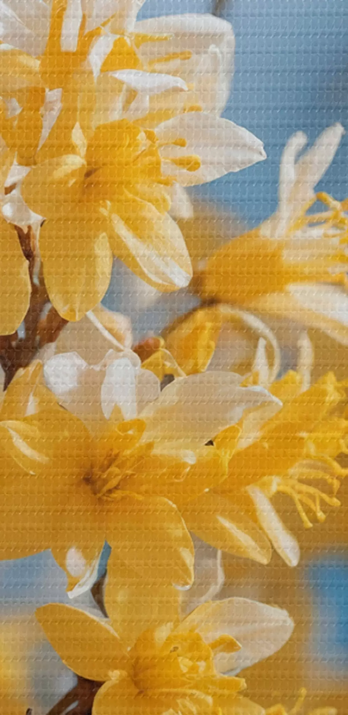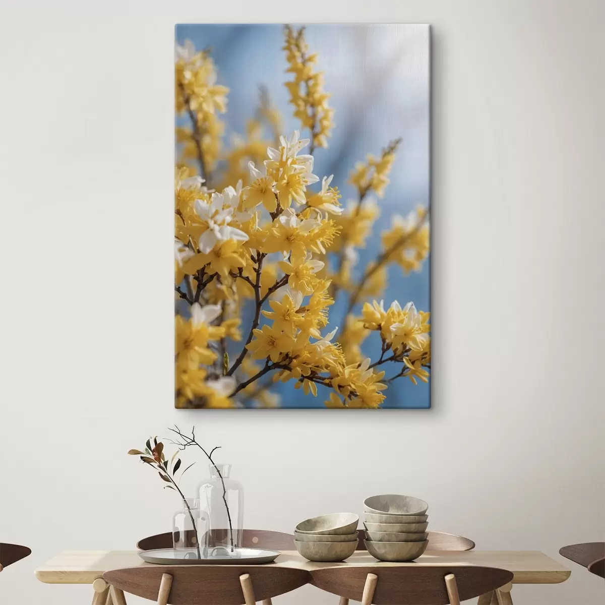 Glezna Dzelteni ziedi uz zila fona ar mīkstu fokusu Nr s44894