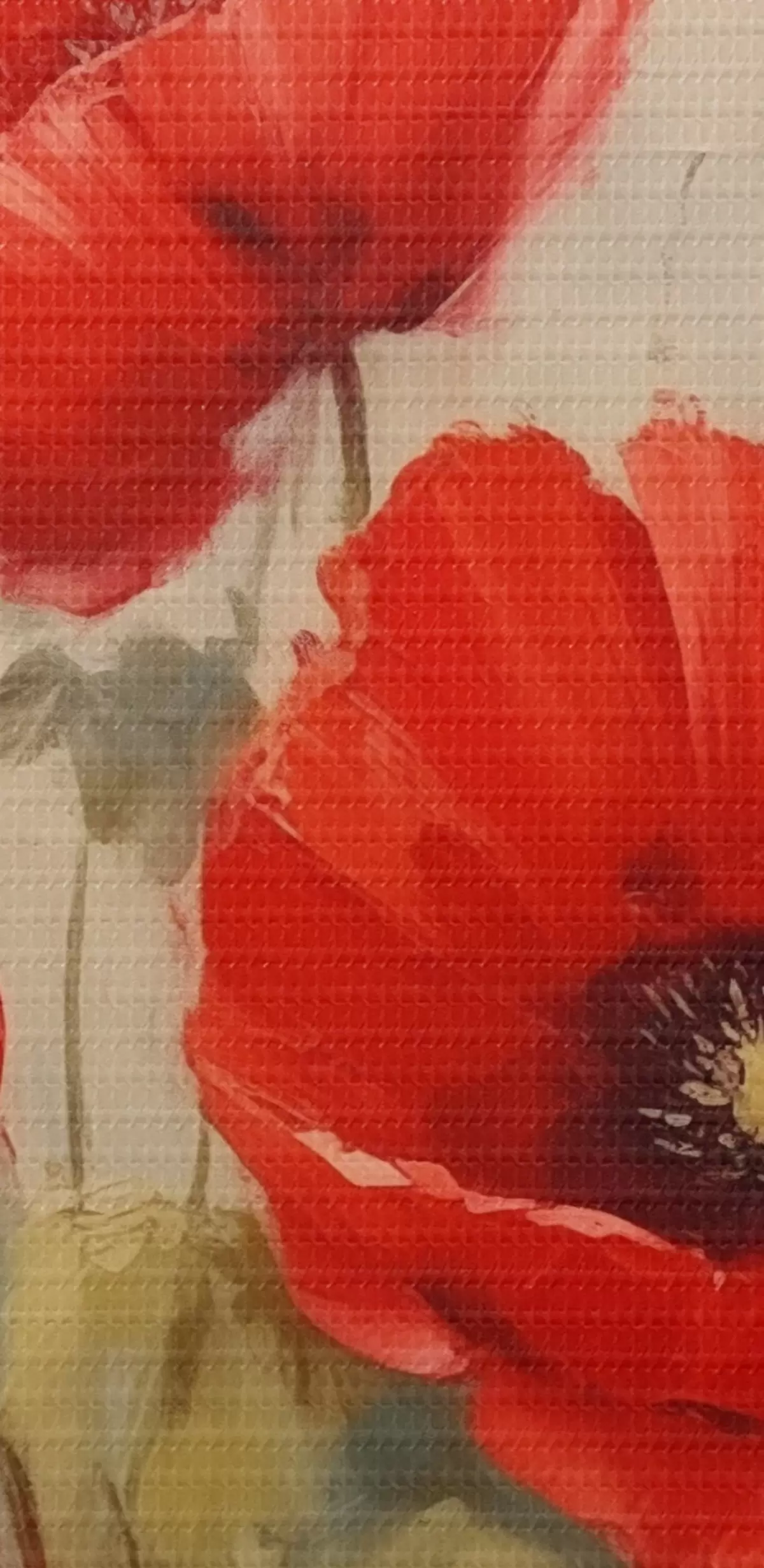 Smalkais diegu pinums uz šī audekla atgādina profesionālu mākslinieku audeklu virsmu.