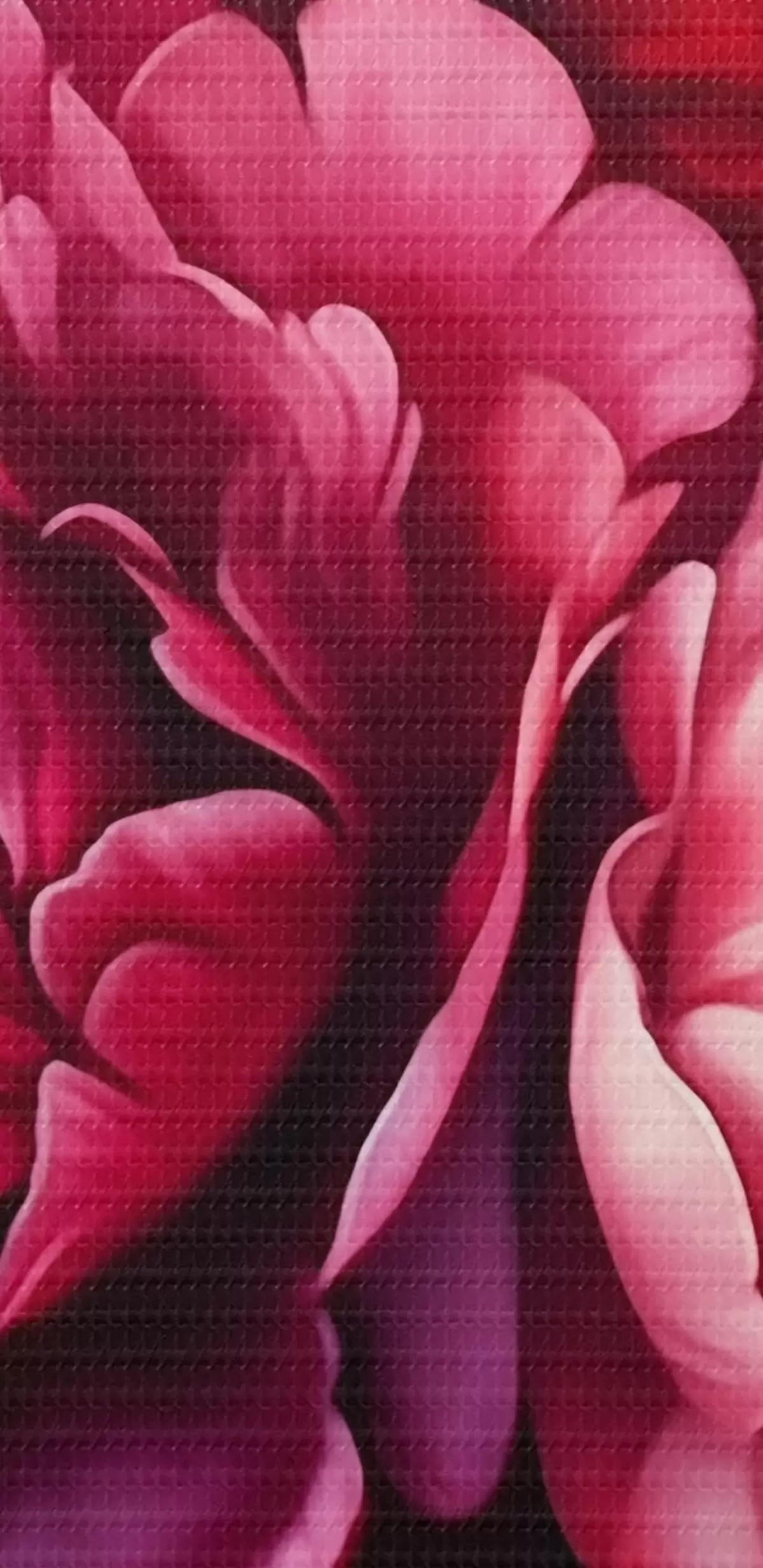 Smalkais diegu pinums uz šī audekla atgādina profesionālu mākslinieku audeklu virsmu.